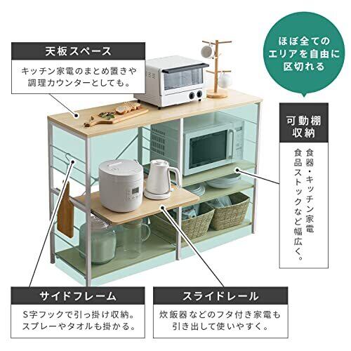 エア・リゾーム レンジ台 レンジラック キッチン 収納 炊飯器ラック レンジボード スライド棚付き キッチンカウンター emery(エメリー) 120cm幅 (ナチュラル×ホワイト, 背板なし)