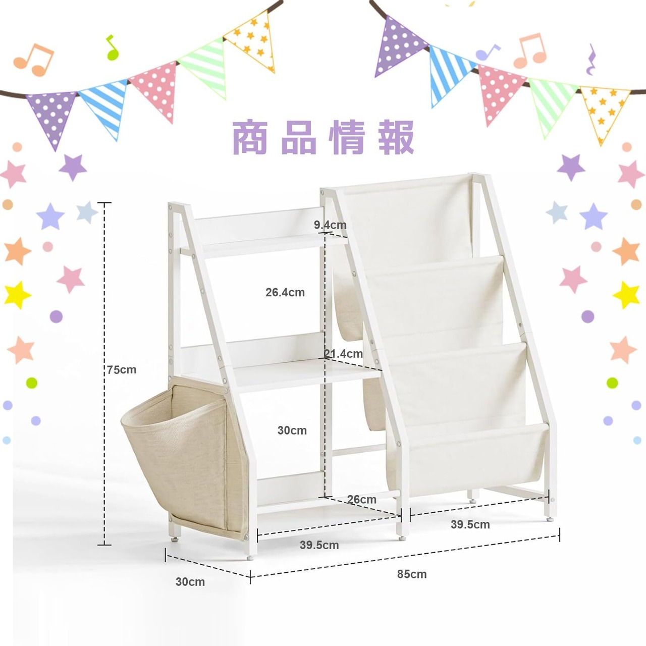 絵本ラック おもちゃ収納 子供用 本棚 大容量 木製マガジンラック おしゃれなキッズブックシェルフ 絵本棚 収納ラック 85.5×30×75cm
