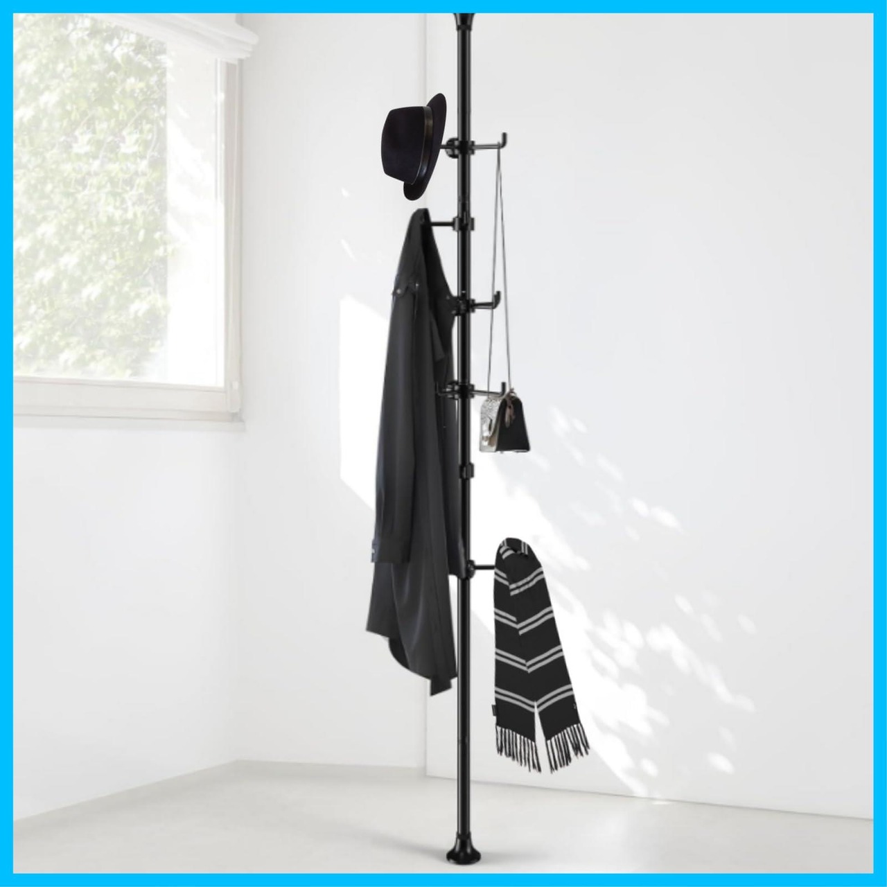 【在庫セール】コートハンガー 自立式ポールハンガー 140-310cm調節可能 12個のフック付き コート、ジャケット、帽子、スカーフを掛けるのに 黒