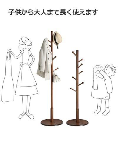 【様々なニーズに対応】: 丸みのあるペグ7つで、このコートスタンドは家族全員での使用に理想的です。ペグは高さ約96cmから約165㎝です。お子様も単独にジャケットを掛けることができます。