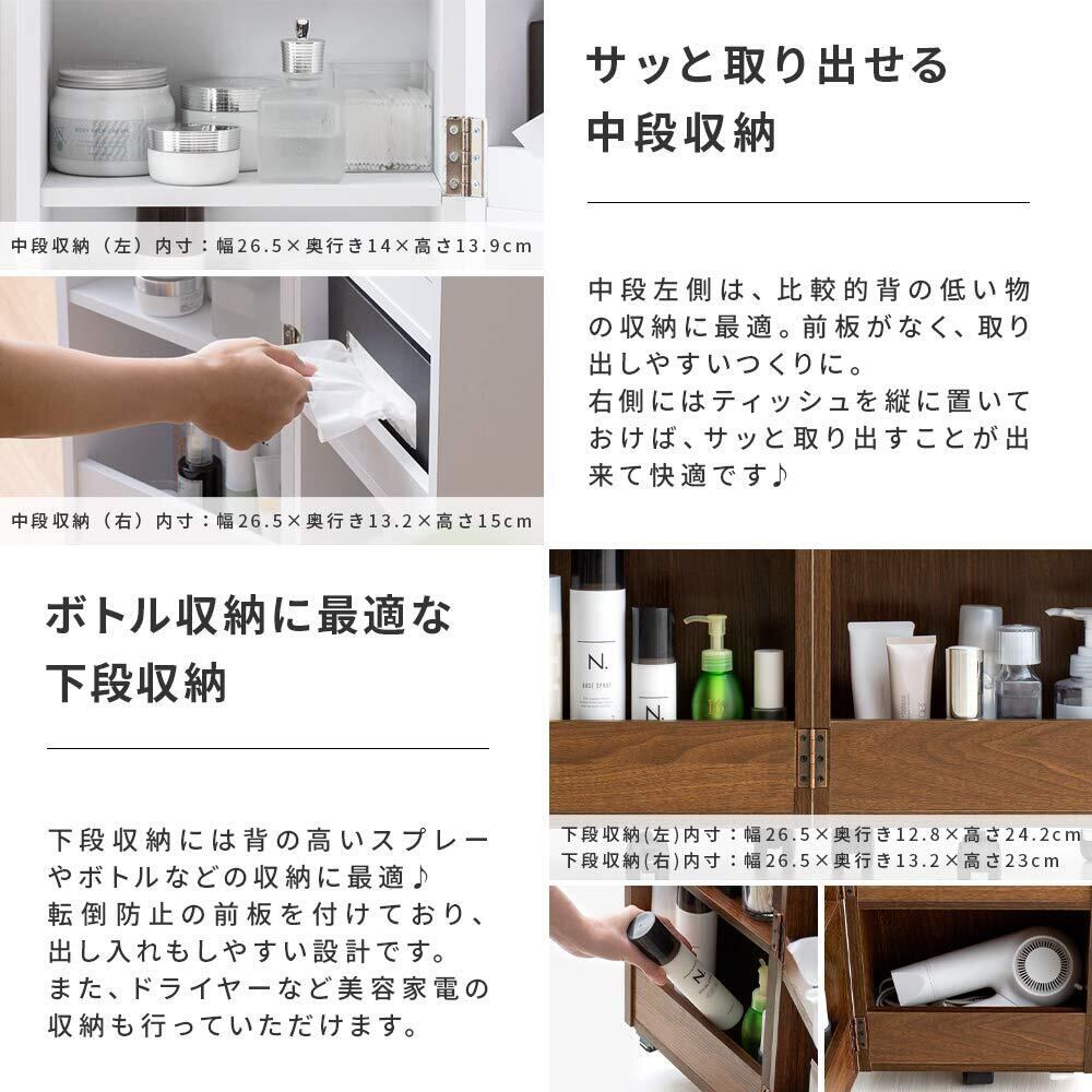 【上段収納内寸】上段左/約幅26.5×奥行き12.5×高さ13.7cm、上段右/約幅26.5×奥行き13.2×高さ3cm 【中段収納内寸】中段左/約幅26.5×奥行き14×高さ13.9cm、上段右/約幅26.5×奥行き13.2×高さ15cm 【下段収納内寸】下段左/約幅26.5×奥行き12.8×高さ24.2cm、下段右/約幅26.5×奥行き12.8×高さ23cm