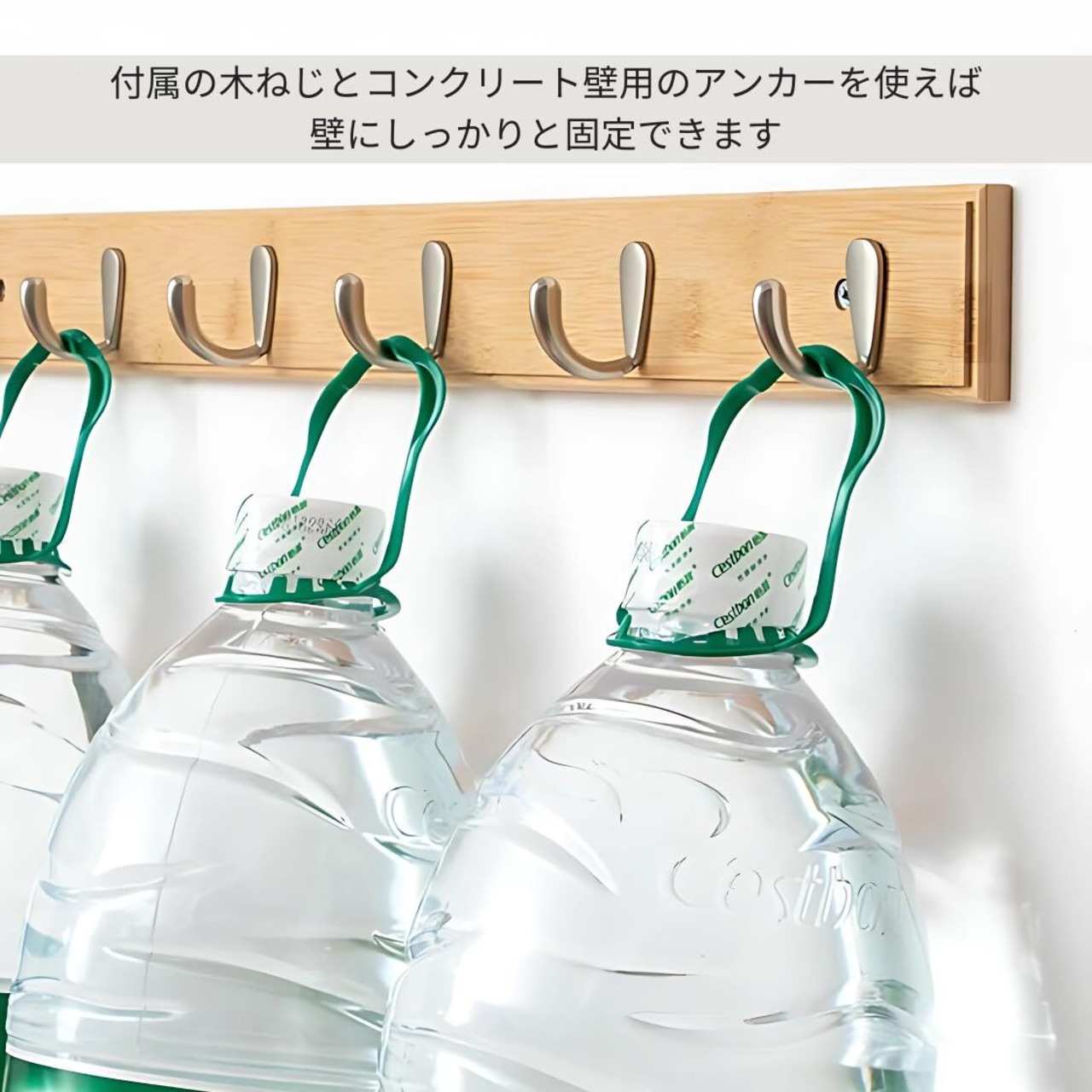 adelphos フックが大きくて掛けやすい 壁掛け 5連 ウォールフック ウォールハンガー 竹製 HOOK2 (ライトブラウン5連)