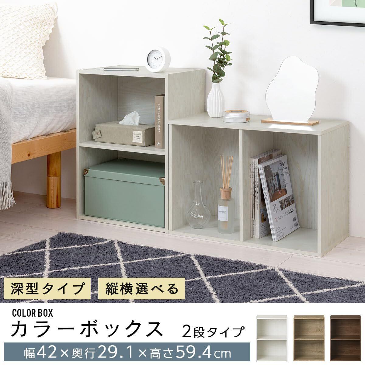 ぼん家具 カラーボックス 2段 A4対応 幅42×奥行29.1×高さ59.4cm 本棚 棚 木目調 マルチラック 収納ボックス オーク