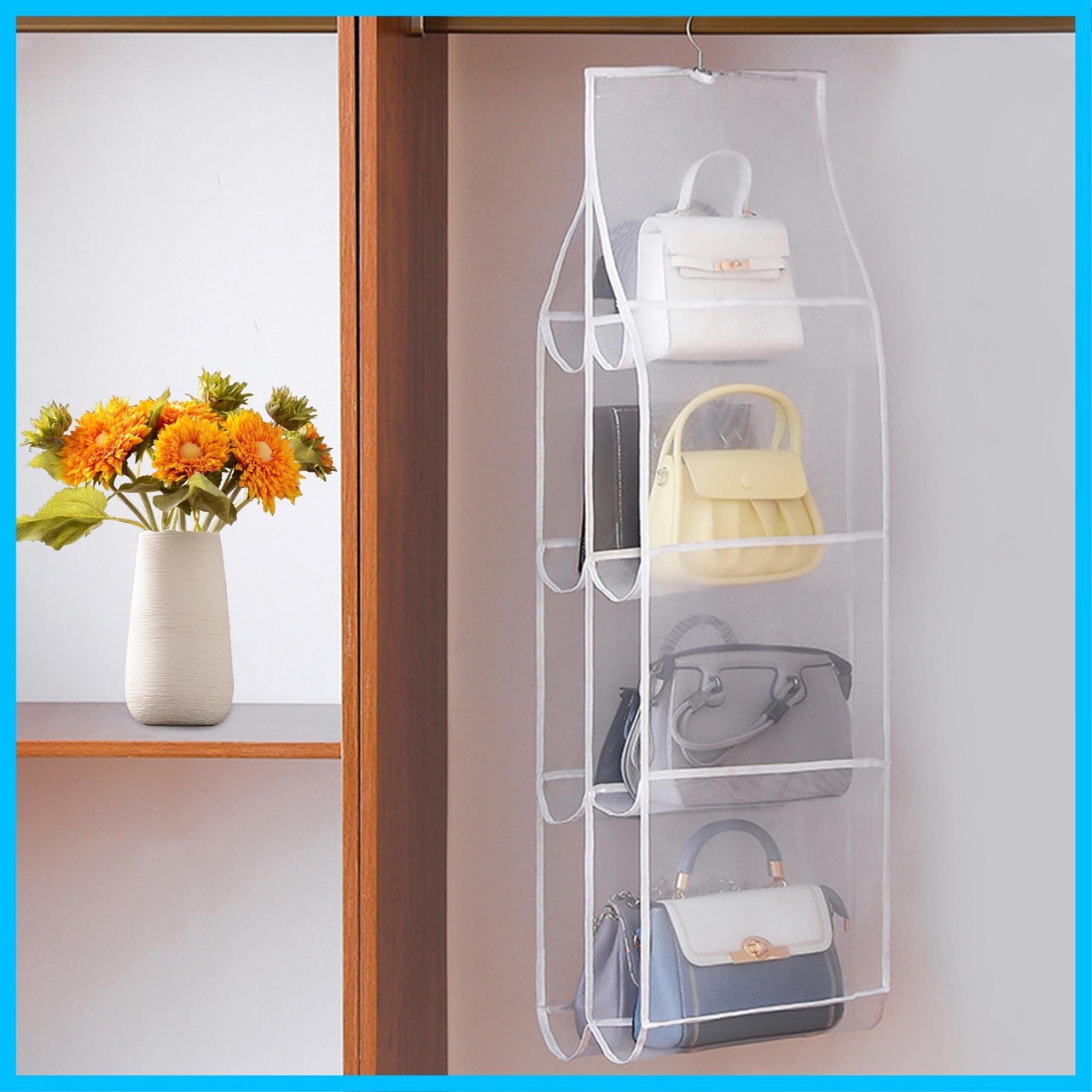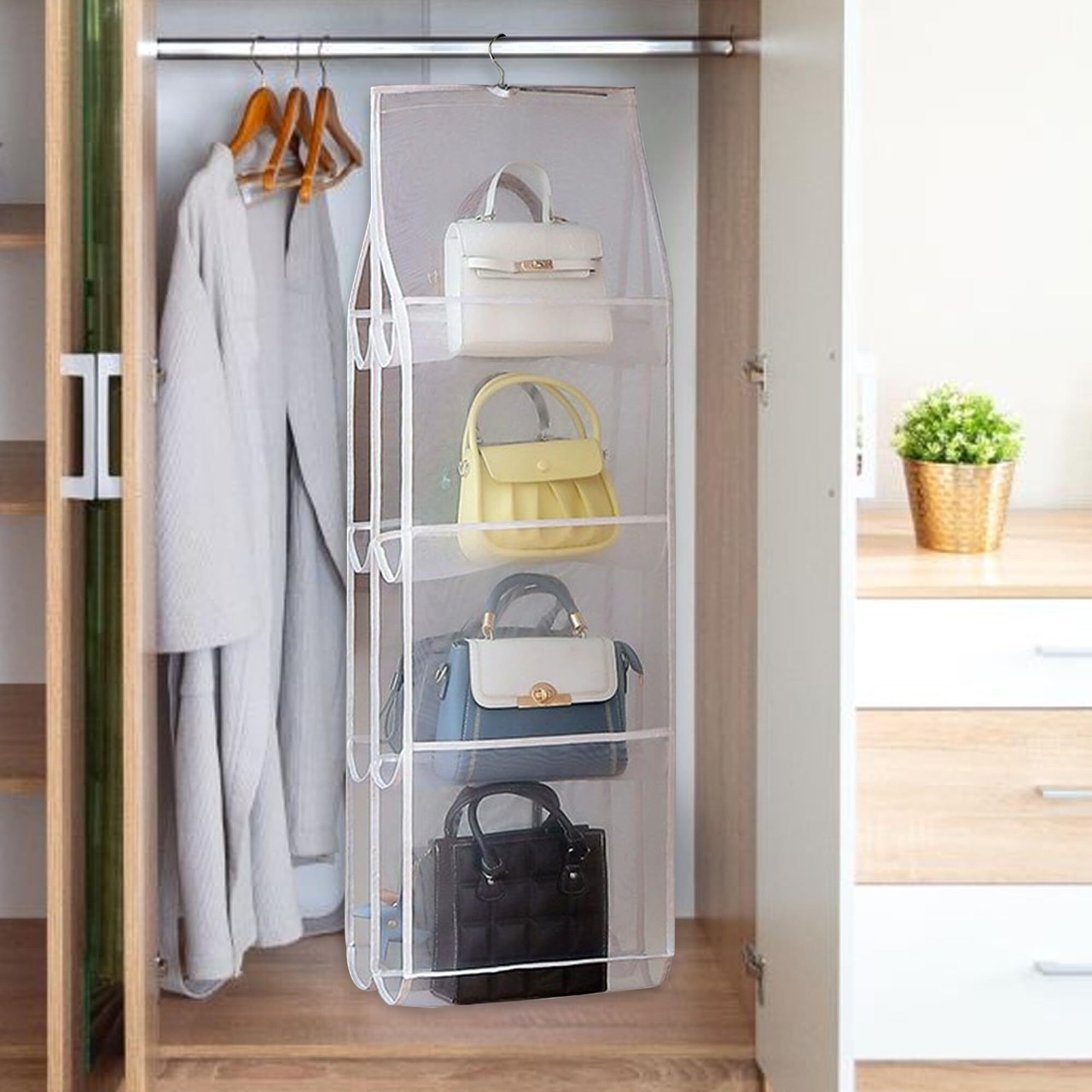 【在庫処分】seOSTO バッグ 収納 吊り下げ収納 カバン 収納 4段式 折りたたみ 鞄 収納 両面収納 8個収納可能 水洗い可能 クローゼット 収納 バッグ収納ラック 省スペース 取り付け簡単 小物入れ収納ポケット 壁掛け 玄関 キッチン カバン掛け カバン収納 かばん 収納(ホワイト 4段式)