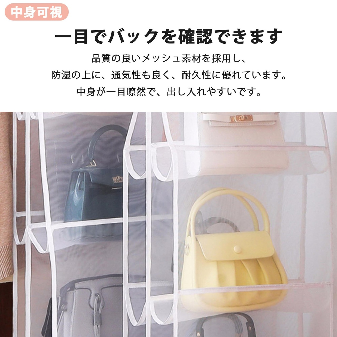 seOSTO バッグ 収納 吊り下げ収納 カバン 収納 4段式 折りたたみ 鞄 収納 両面収納 8個収納可能 水洗い可能 クローゼット 収納 バッグ収納ラック 省スペース 取り付け簡単 小物入れ収納ポケット 壁掛け 玄関 キッチン カバン掛け カバン収納 かばん 収納(ホワイト 4段式)