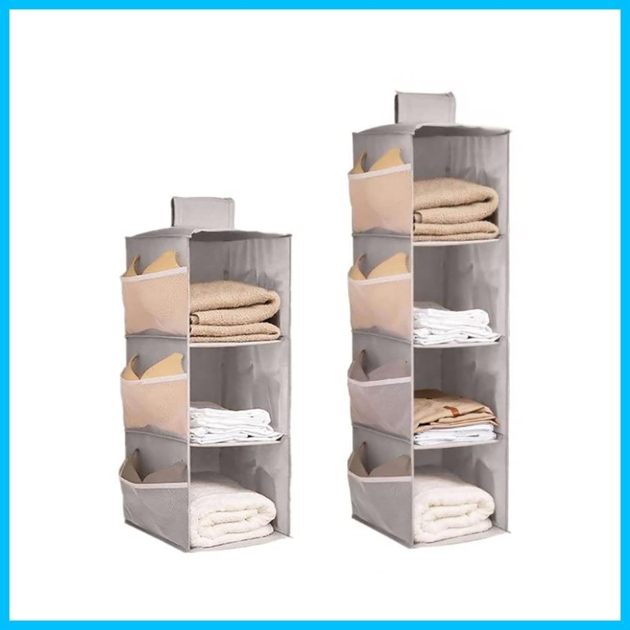 Hongmeru 吊り下げ収納 クローゼット 収納 吊り下げ 水洗い可能 防湿防カビ 取り付け簡単 つりさげ 収納 衣類ラック 下着 靴下 帽子 収納 クローゼット つりさげ 収納 収納 バッグハンガー 4段式 3段式(3段式 ライトグレー)