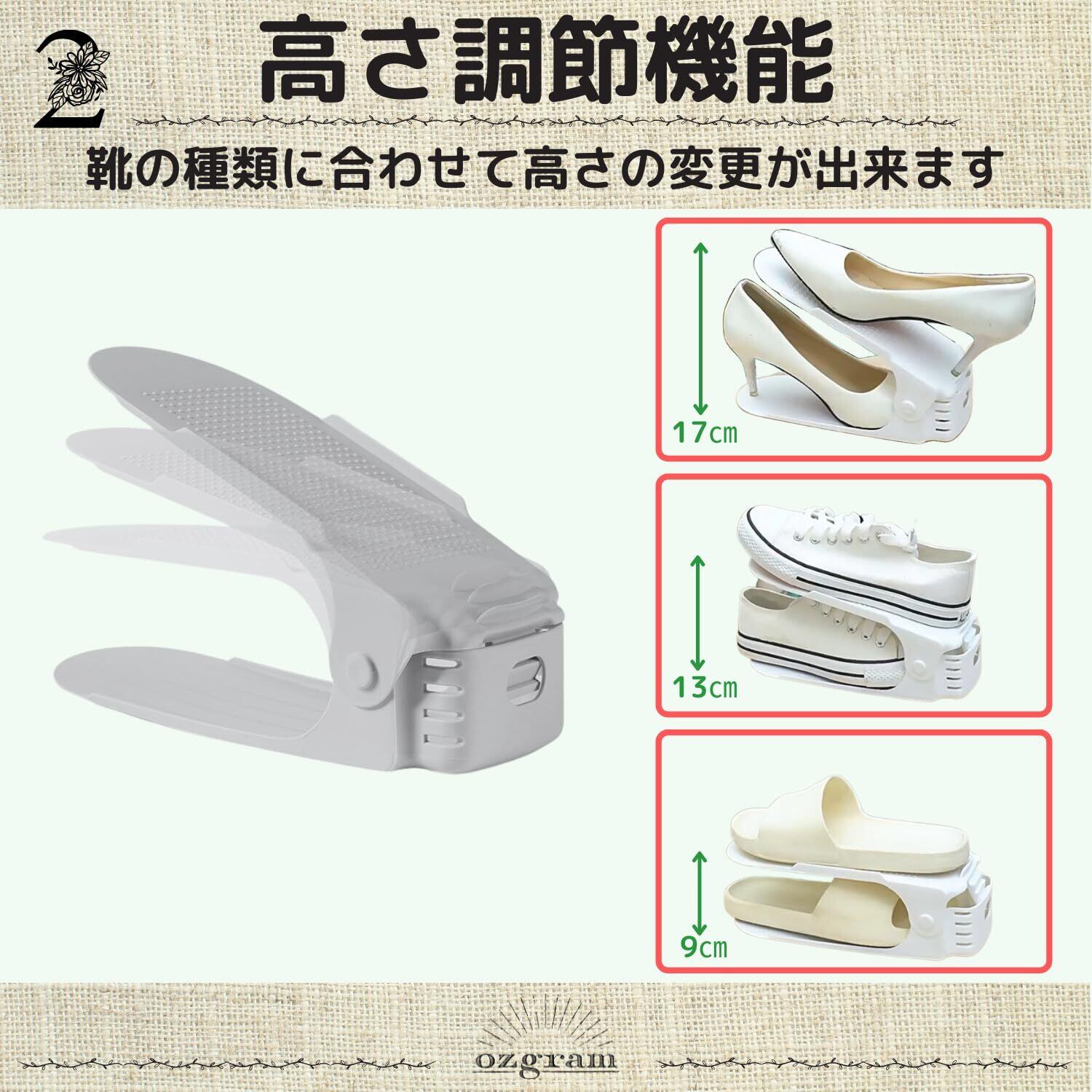 【人気商品】ozgram シューズホルダー 【グレー】 【6個セット】 シューズラック 靴ホルダー 下駄箱 玄関 靴 収納 靴箱 省スペース 高さ調節可