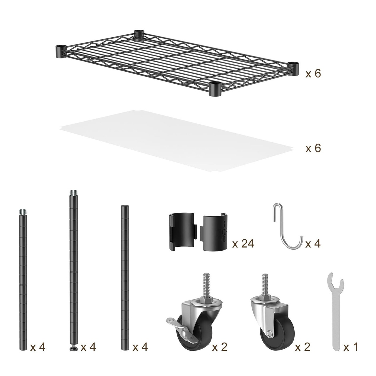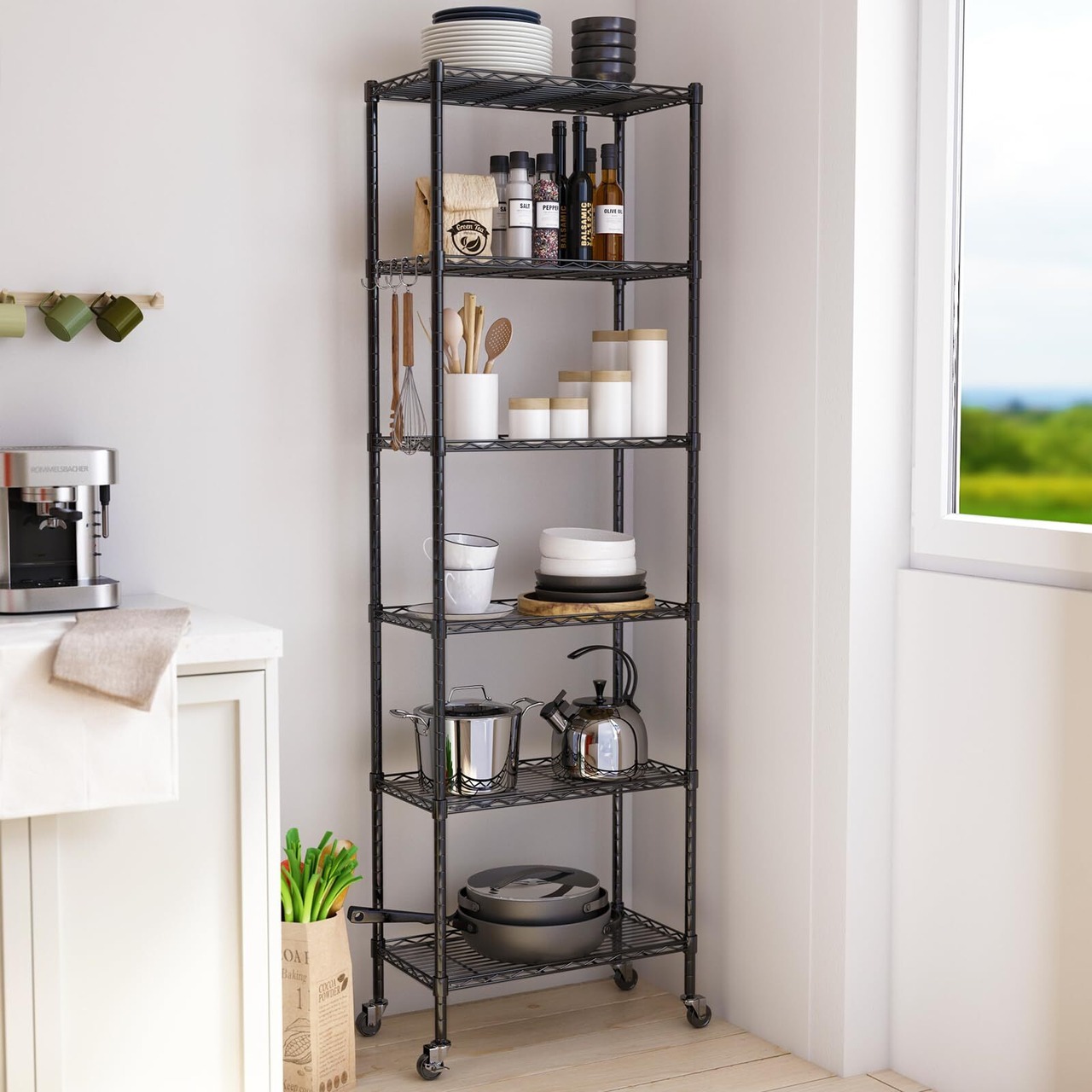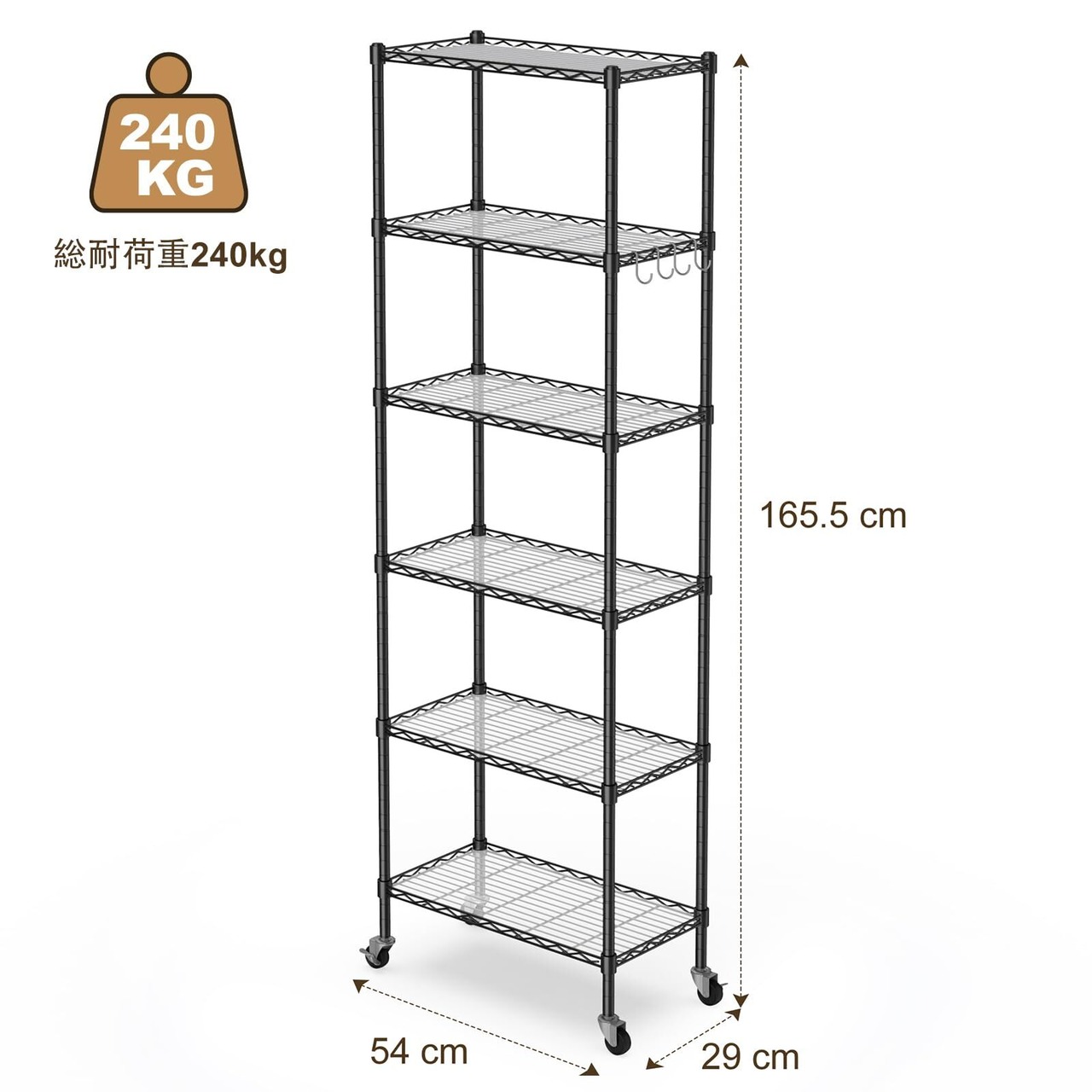 NATRKE メタルラック 6段 キャスター付き スチールラック スチールシェルフ ワイヤーラック 大容量 防錆 傷つきにくい おしゃれ 省スペース棚 耐荷重240kg 幅54×奥行29×高さ165.5cm