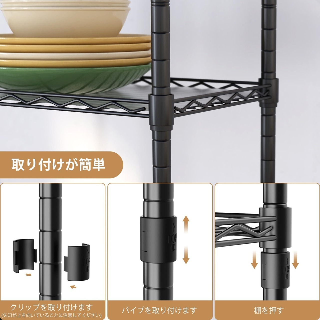 【人気商品】NATRKE メタルラック 6段 キャスター付き スチールラック スチールシェルフ ワイヤーラック 大容量 防錆 傷つきにくい おしゃれ 省スペース棚 耐荷重240kg 幅54×奥行29×高さ165.5cm