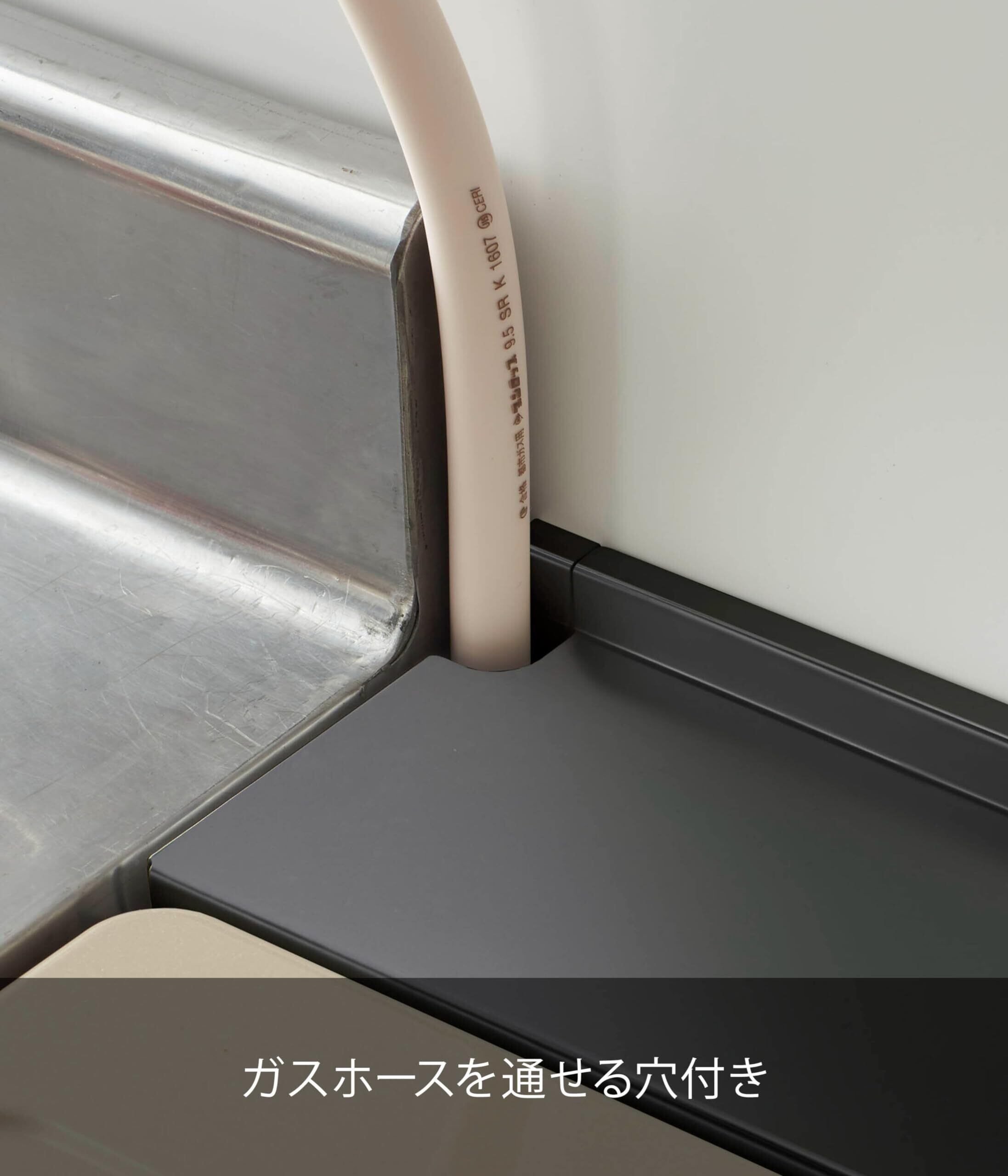 ガスホースを通せる穴付き。