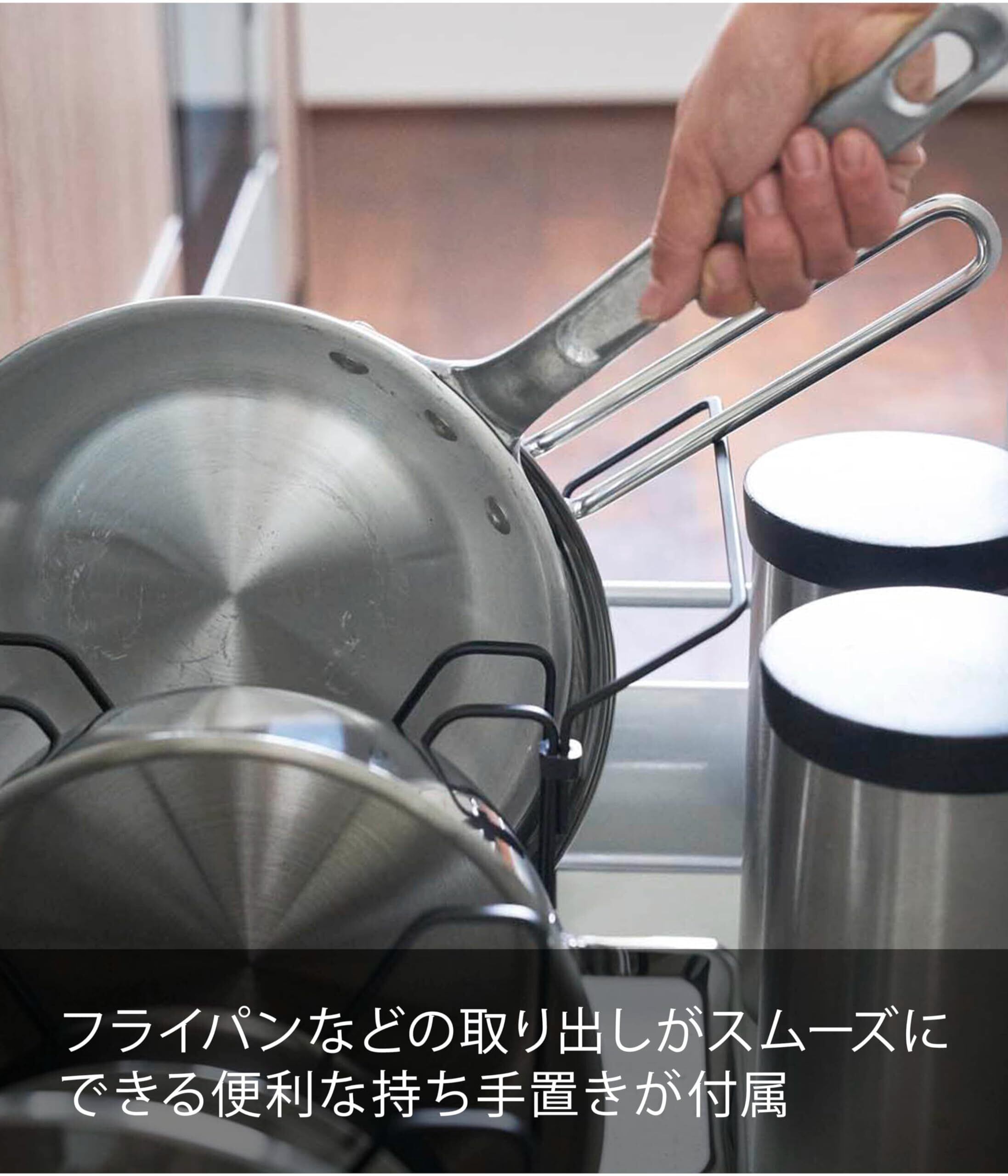 山崎実業(Yamazaki) シンク下 伸縮 鍋蓋& フライパンスタンド ブラック 約W45~82×D20×H17.5cm タワー tower キッチン 収納 3841