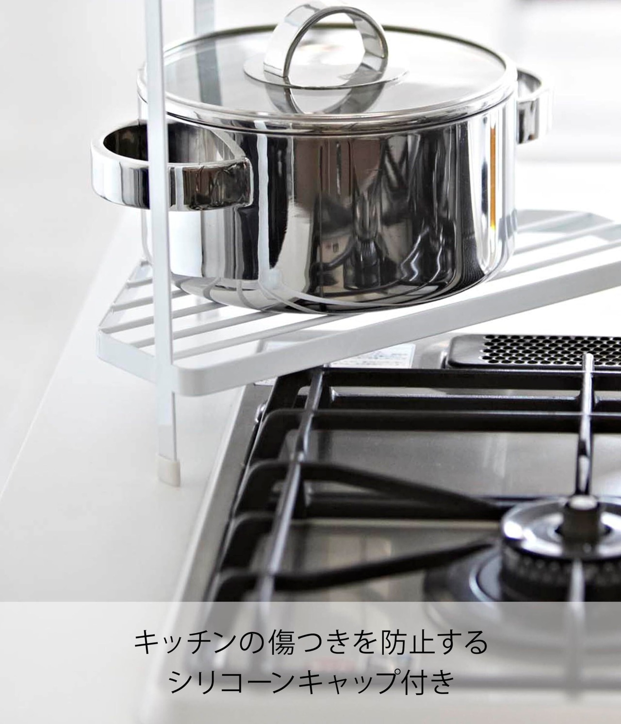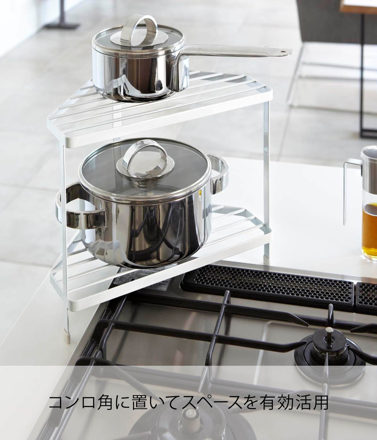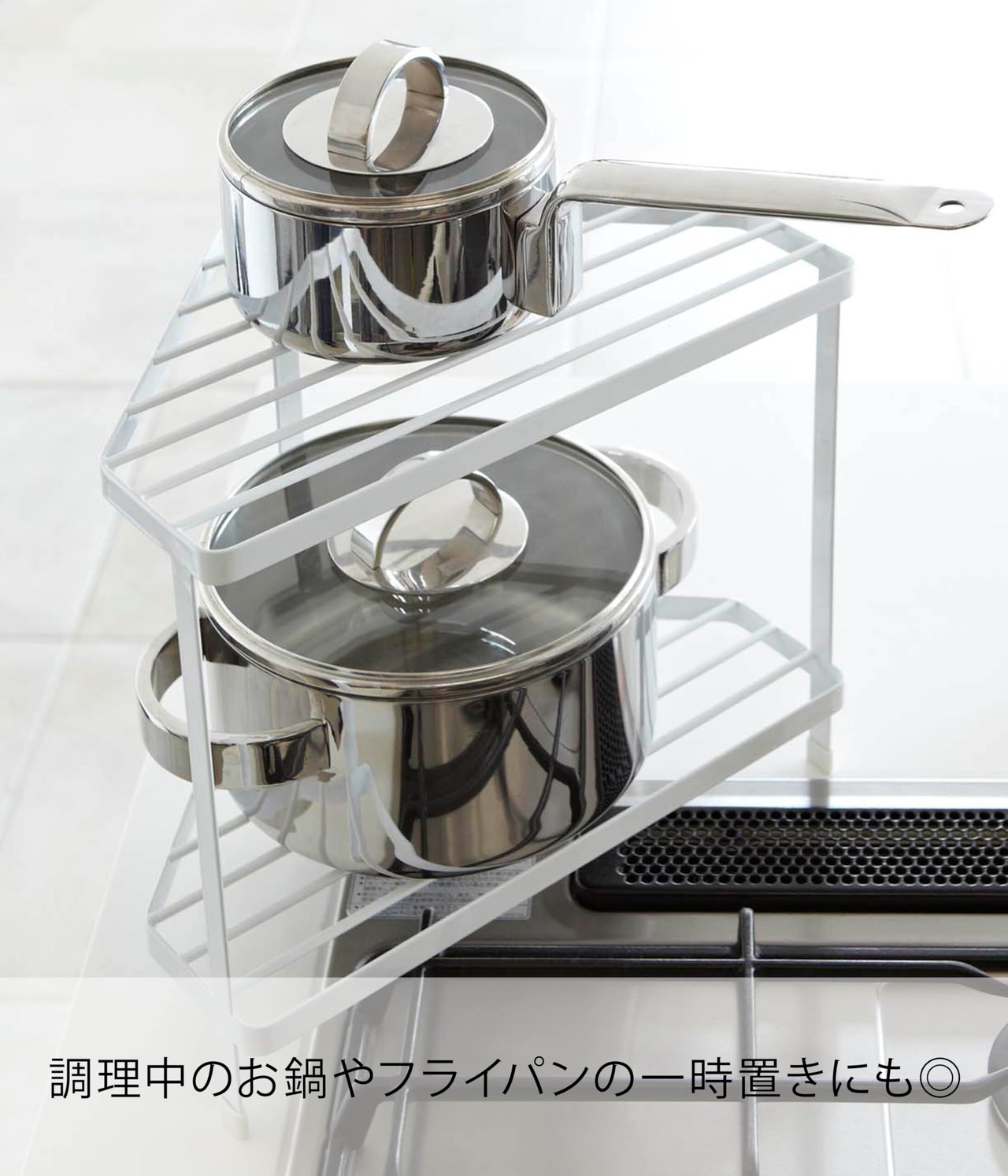 コンロのコーナーに置いて調理中の鍋や調味料などを置いておける便利なキッチンコーナラック。