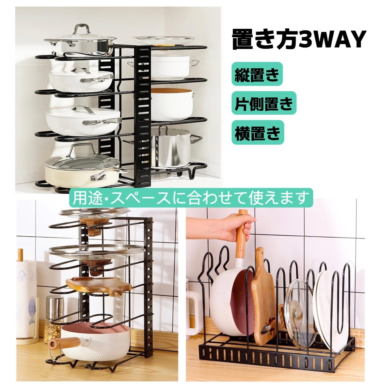 【多機能収納】: U字型仕切りパーツが8個付属しております。仕切りパーツの間隔はお好みで調整することができるので、鍋だけでなく、まな板、食器、調理器具などを収納できます。
