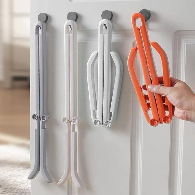 【折りたたみ式】ブーツを直立させるスマートなブーツクリップ。 差して使用するだけで、ブーツの型崩れを防ぎます。 使用しない時は、ドアノブに掛ける事が出来ますので収納場所に困らない