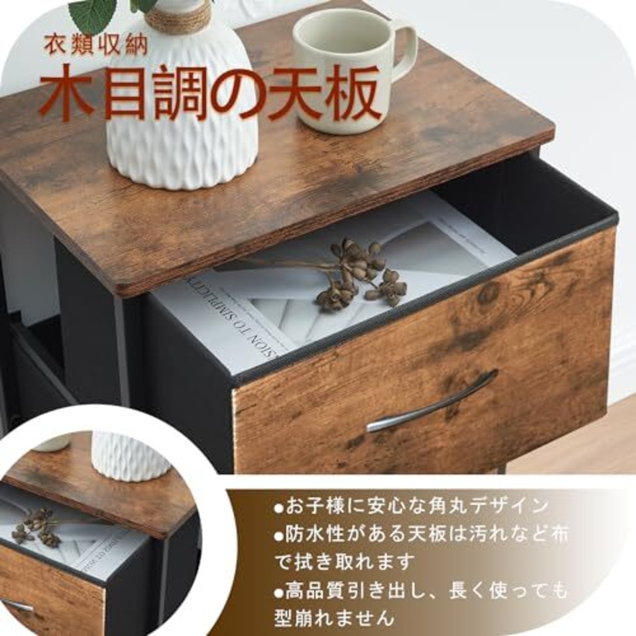 【体に優しい素材を採用】チェストのフレームは上質で頑丈なスチール素材を採用されるため、長持ちのうえ、安定性・耐摩耗性に優れています。しっかりとした構造なので、安定してぐらつきません。通気性がよく丈夫な不織布製の引き出しにはハンドルが付きで、スムーズに開け閉めできます!それに質感がよい木目調の天板はエレガントで、柔らかい雰囲気を!