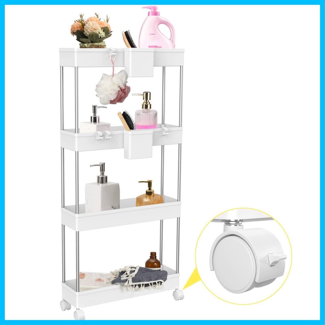 【特価セール】Goowin キッチンワゴン 12cm 隙間収納 キャスター付き スリム 収納 棚 洗面所 冷蔵庫横 洗濯機横 ラック キッチン用品 ホワイト 4段