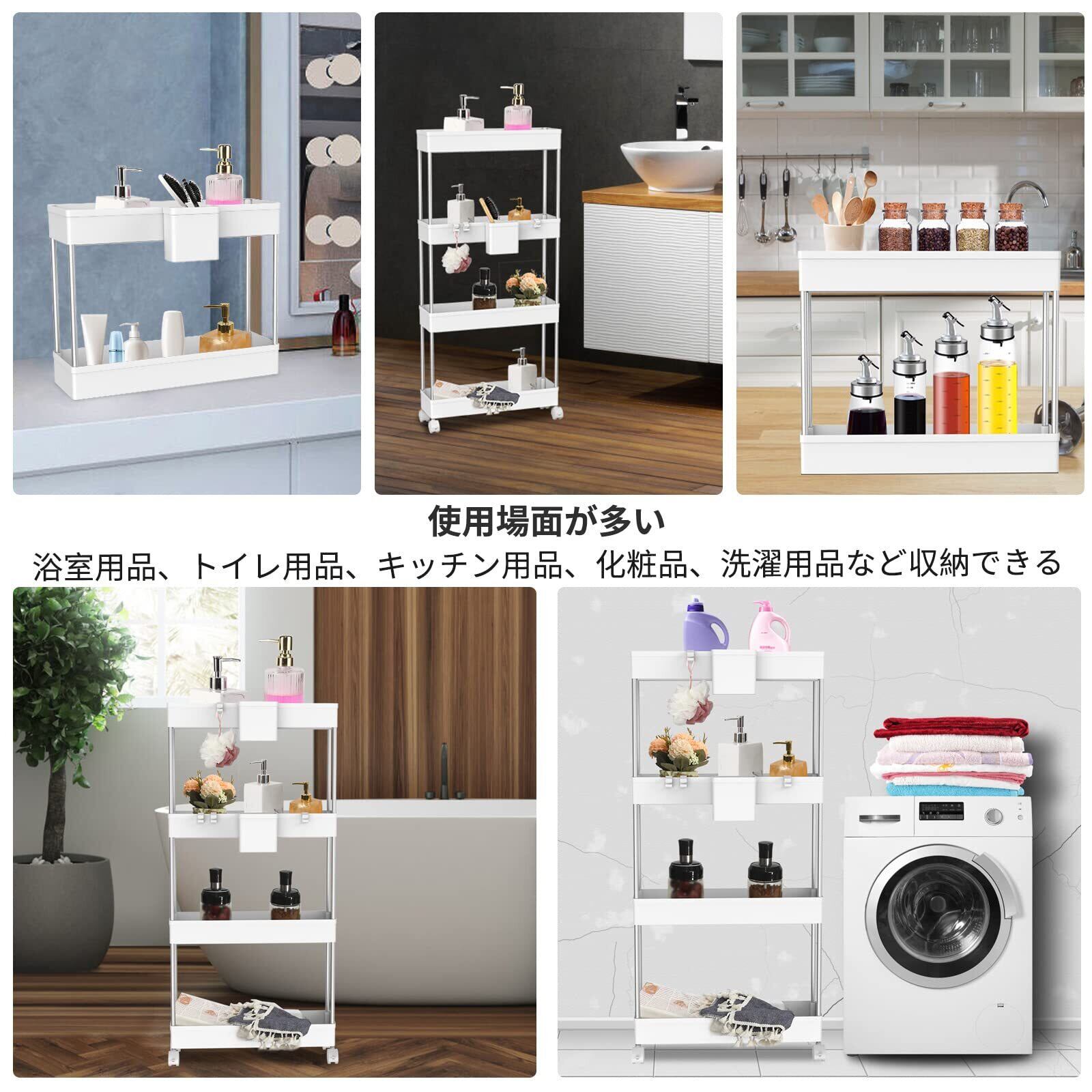 Goowin キッチンワゴン 12cm 隙間収納 キャスター付き スリム 収納 棚 洗面所 冷蔵庫横 洗濯機横 ラック キッチン用品 ホワイト 4段