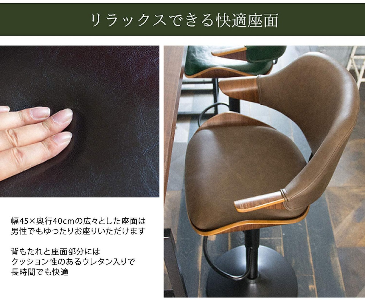 宮武製作所 バーチェア Gracia 幅56×奥行き50×高さ91~112cm グリーン 360度回転 KNC-J2900 GR