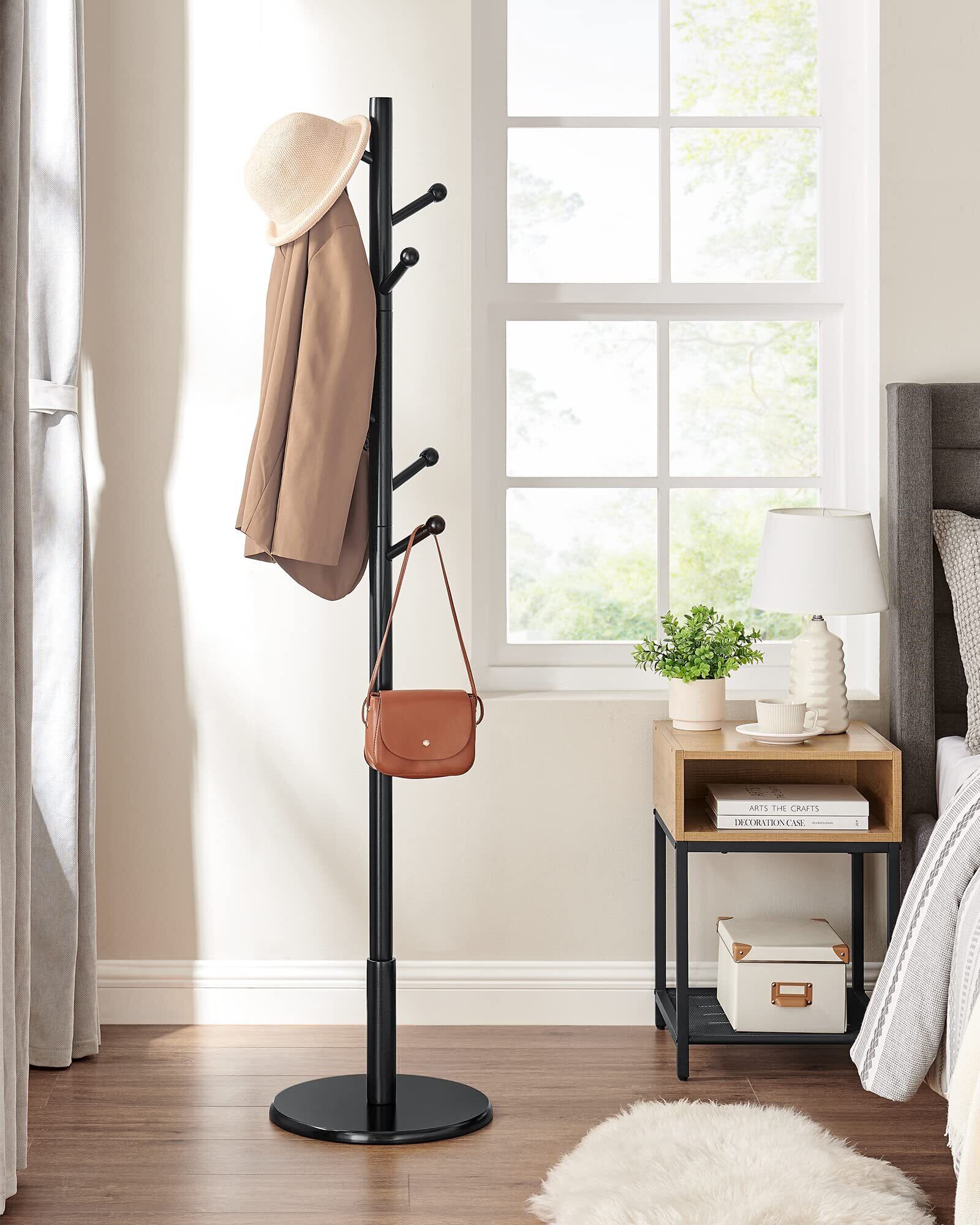 【特価商品】VASAGLE コートハンガー ポールハンガー フリースタンディング 7つの丸いフック付き 木製ホールツリー 玄関コートスタンド 服 帽子 財布 玄関 リビングルーム ブラック RCR007P33