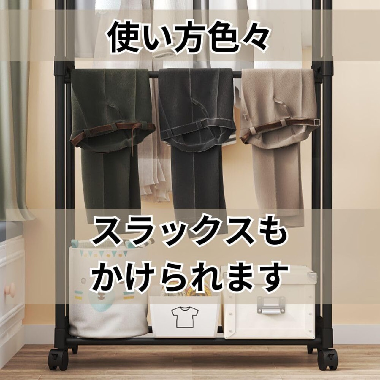 【ちょい掛けにちょうどいい、軽やかハンガーラック】スリムなのに2段構造で、明日着る服や使用頻度の高い衣類をすっきり掛けられるハンガーラック。玄関先や寝室、ランドリースペースなど省スペースのちょい掛けにぴったりの実力派です。空間がスッキリ見える美しいフォルムで、見せる収納としても活躍。ナチュラル系やシンプルモダンなど、様々なインテリアにマッチするホワイトとブラックの2色展開です。