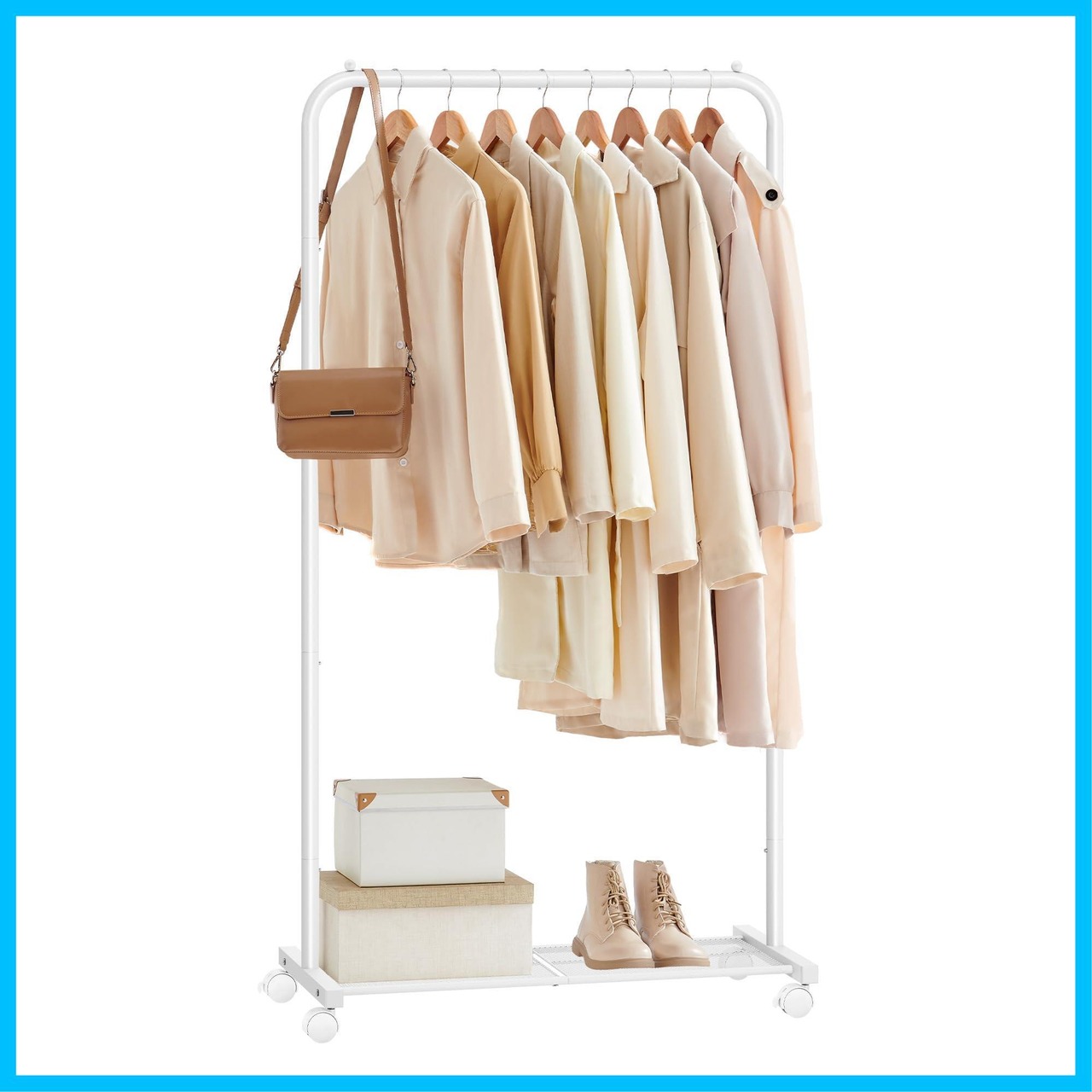 SONGMICS ハンガーラック スリム パイプハンガー スタイルハンガー コート・洋服掛け 室内物干し キャスター付き 頑丈 衣類収納 幅74cm ちょうどいいサイズ 耐荷重約35kg 組立簡単ホワイト HSR130W01
