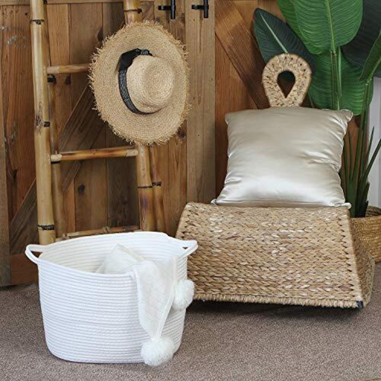 コットンロープの優しい雰囲気、リビングに置いておいても雰囲気を邪魔しではありません。ベッドの横に置いて、ファブリックや、パジャマなどの仮置きに使うこともできます。