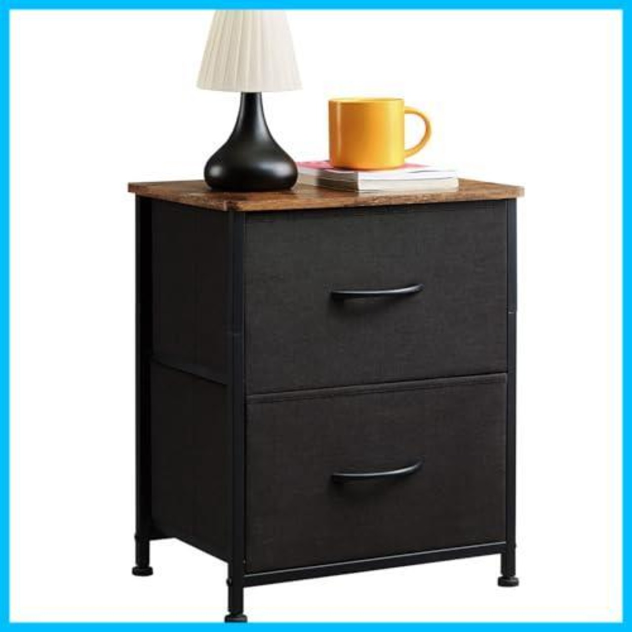 Somdot ベッドサイドテーブル チェスト タンス 収納 ナイトテーブル ソファー おしゃれ 棚付き 引き出し 幅40 奥行30 高50 布製 night table リビング スリム 一人暮らし ブラック
