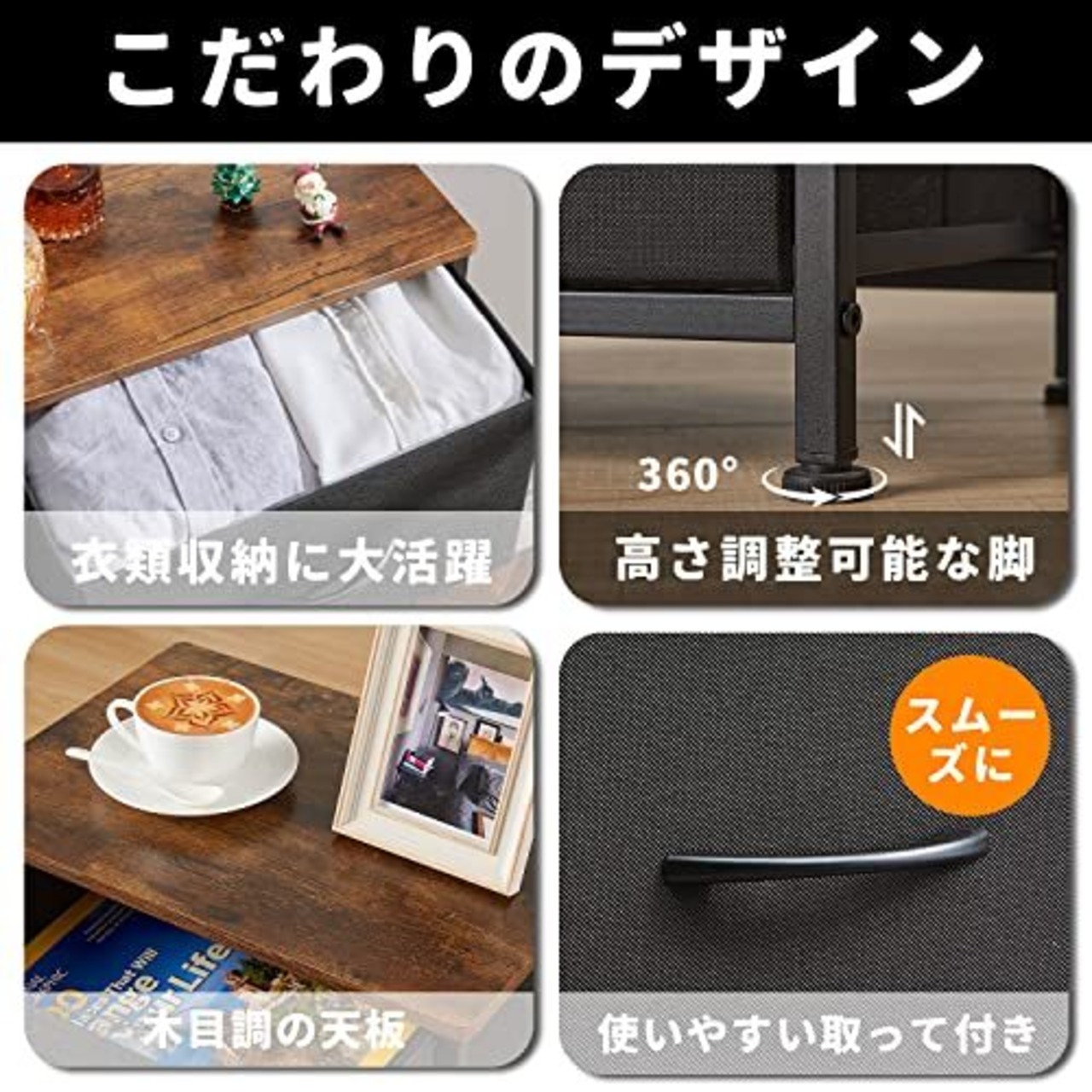 【高品質な素材】2段チェストは上質で頑丈なスチールを採用されるため、長持ちのうえ、安定性・耐摩耗性に優れています。優しい風合いの木目調の天板はよりエレガントで、耐荷重10kgまでで、上に本やコップなどの小物を置けます。ナイトテーブルの脚は調整できるタイプで、平らでない地面にバランスを保つために調整できます。下にも一定のスペースがあって、掃除しやすいです。