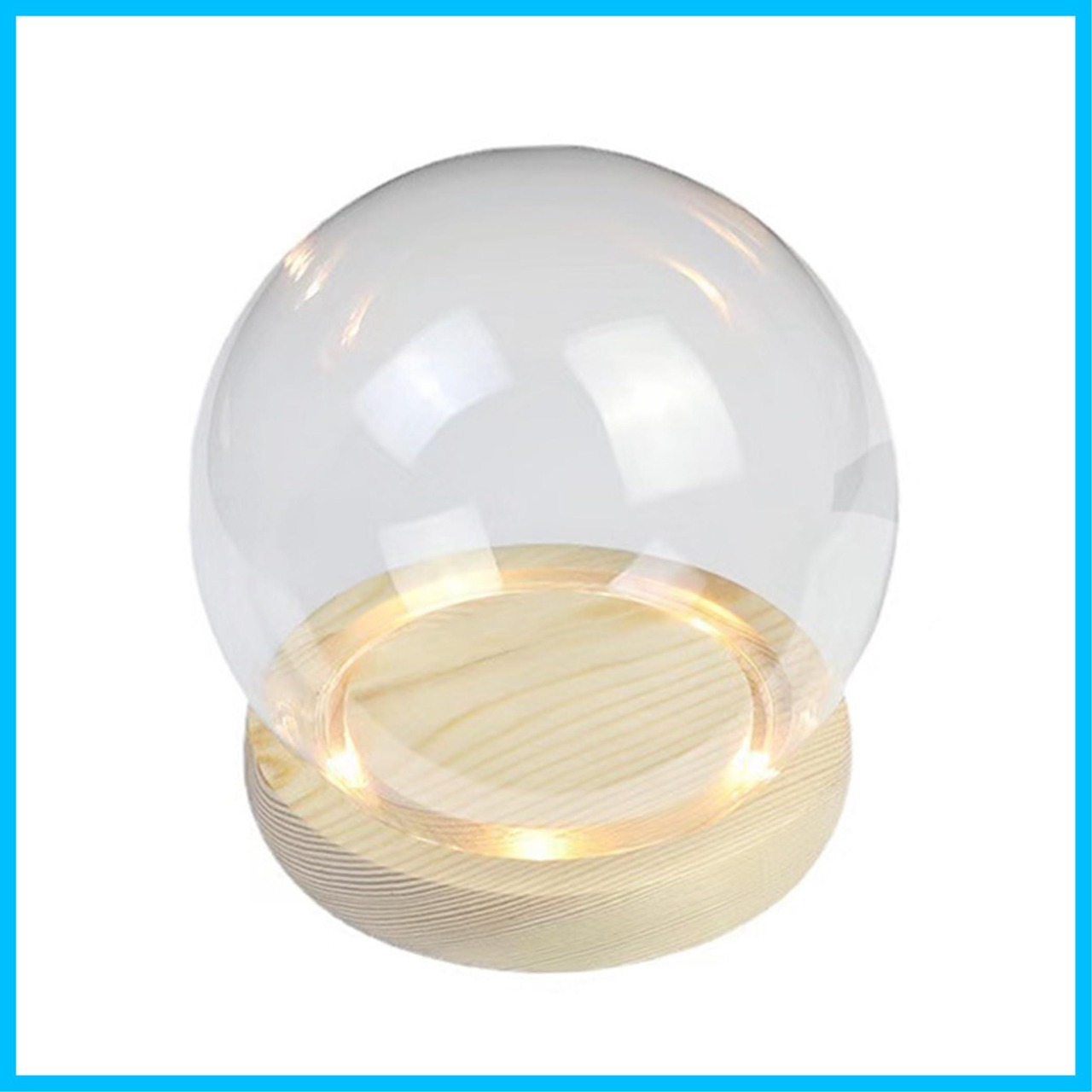 EdisonBrain LED付き 透明 ガラスドーム 直径約12cm ディスプレイ コレクション ケース 展示 スノードーム 乾電池給電 発光インテリア クローシュ 木製ベース
