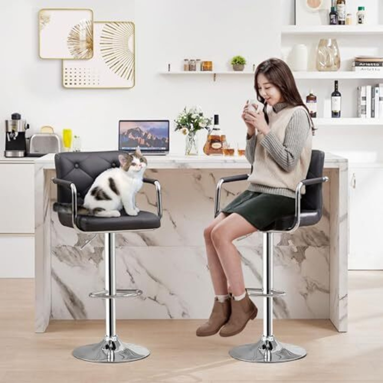 VECELO カウンターチェア スツール 昇降式 回転 1脚 ハイスツール バーチェア フットレスト付き 背もたれ付き アーム付き ダイニング キッチン 調節可能 コンパクト 軽量 おしゃれ アイランドキッチン キッチンカウンター グレー【日本正規輸入品】