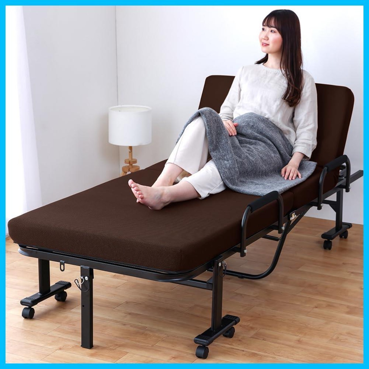 【特価セール】アイリスオーヤマ 折りたたみベッド シングル ハイタイプ コンパクト 折り畳み 折りたたみ おしゃれ お洒落 組立簡単 来客用 省スペース シンプル OTBSS-KRH ブラウン