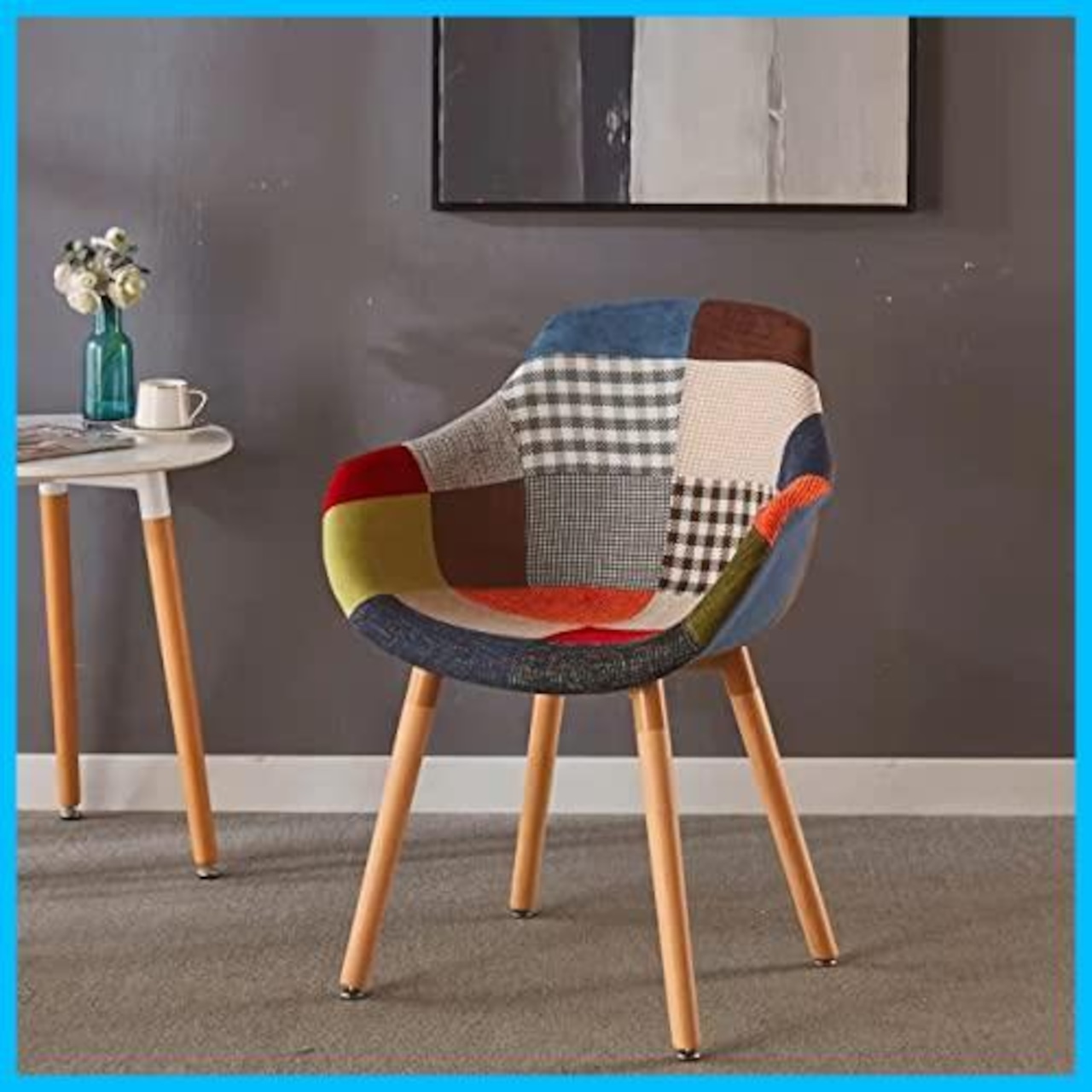 【新着商品】イームズダイニングチェア シェルチェア ファブリッ クチェア 北欧スタイル デザイナーファッション ホームオフィスチェア リビングルームチェア 簡単な組み立て 小さくて軽い (パッチワーク, 1)