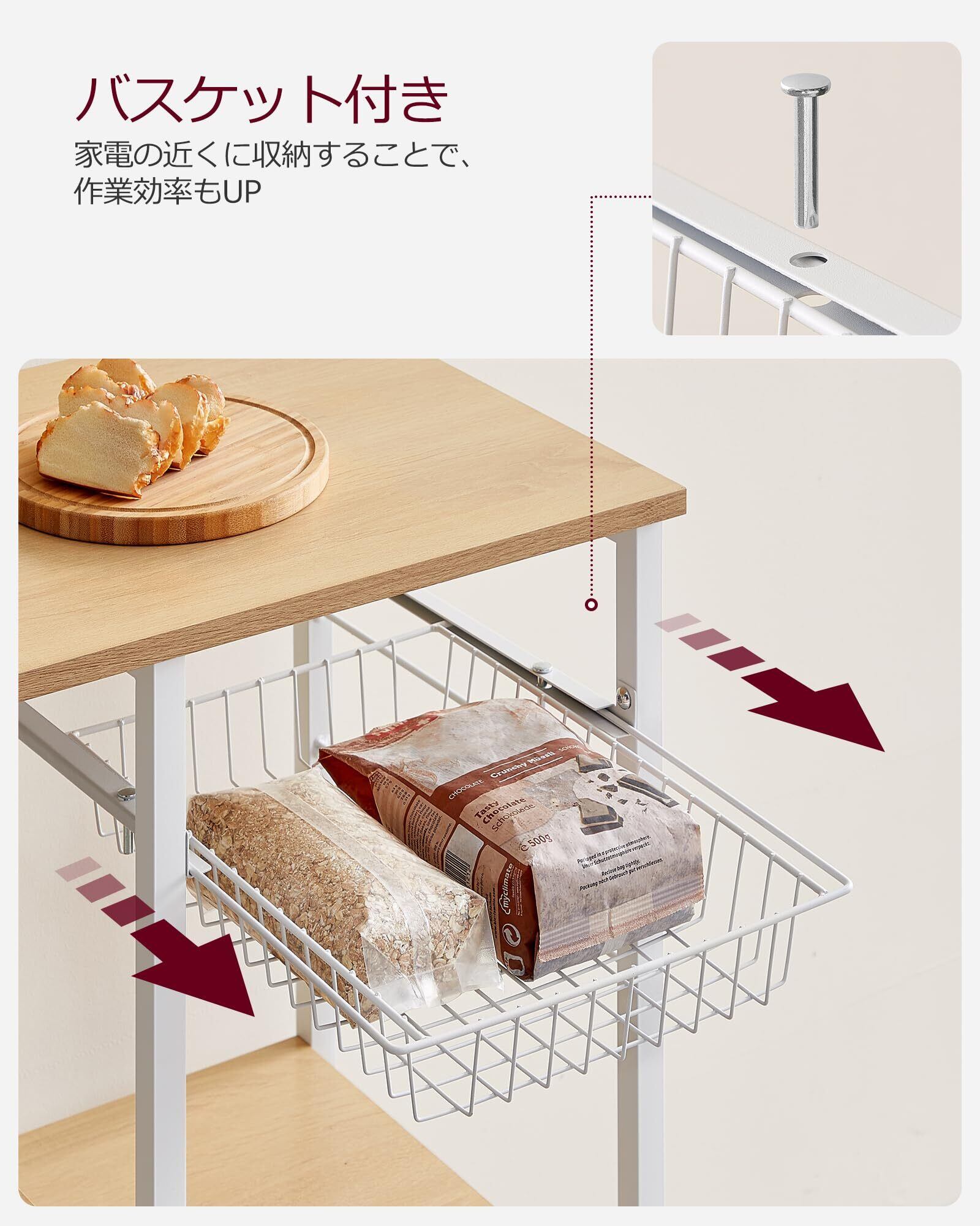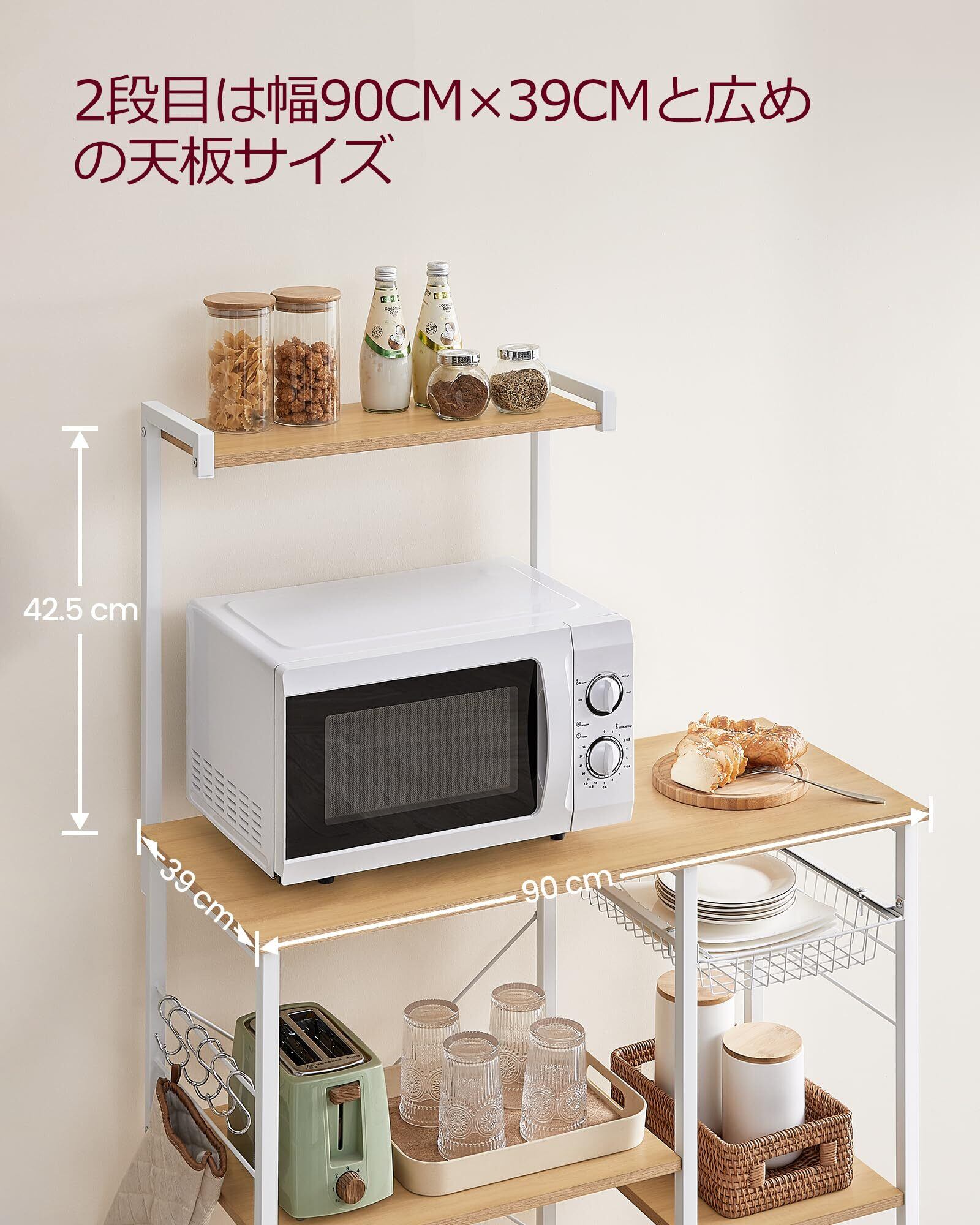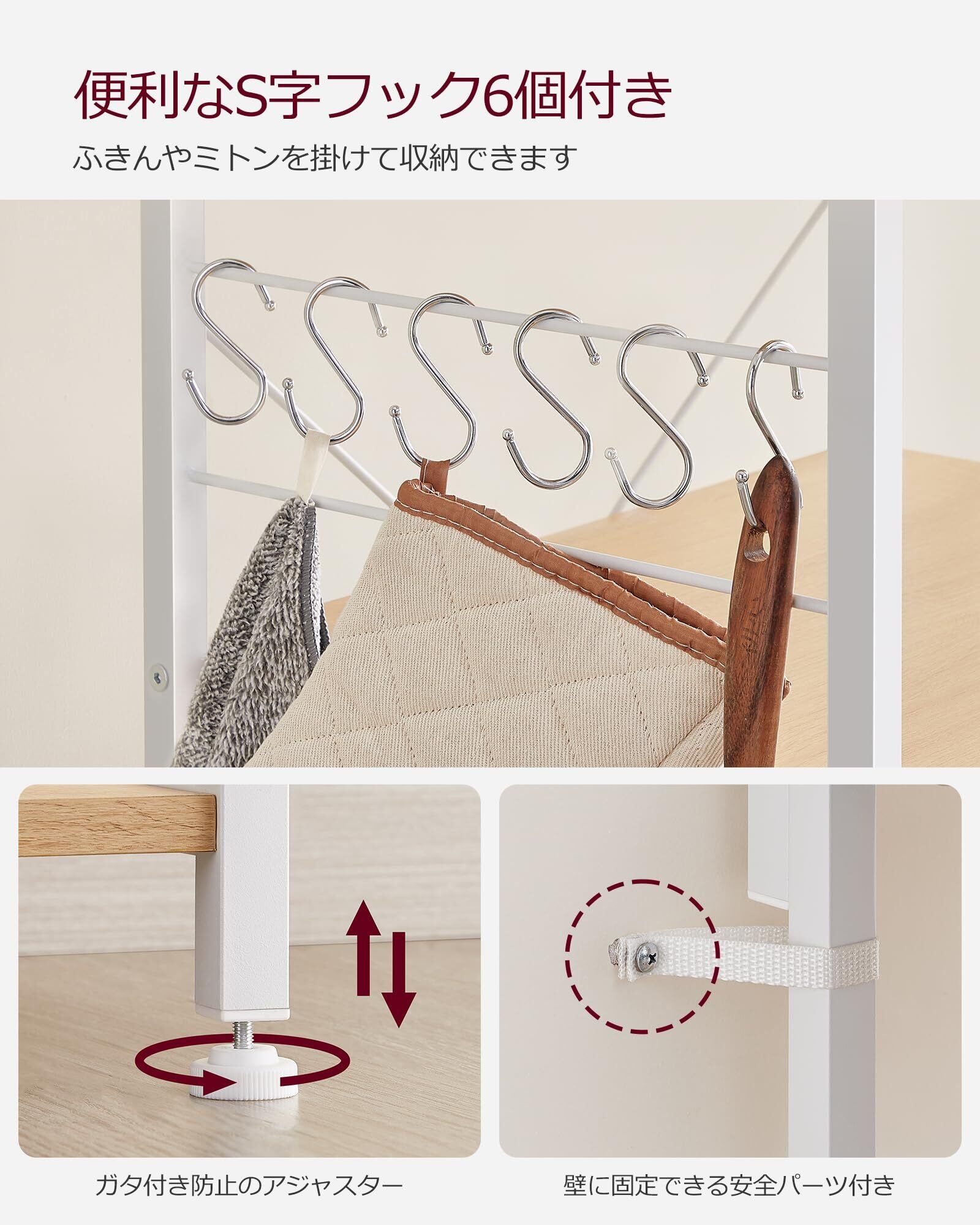 【新着商品】VASAGLE レンジボード 幅90 レンジ台 キッチンラックキッチンワゴン 食器棚 キッチン収納 6個S字ラックを付き大型レンジ対応 高耐荷設計キッチンワゴン 食器棚 キッチン収納 6個S字ラックを付き ナチュラル KKS035W09