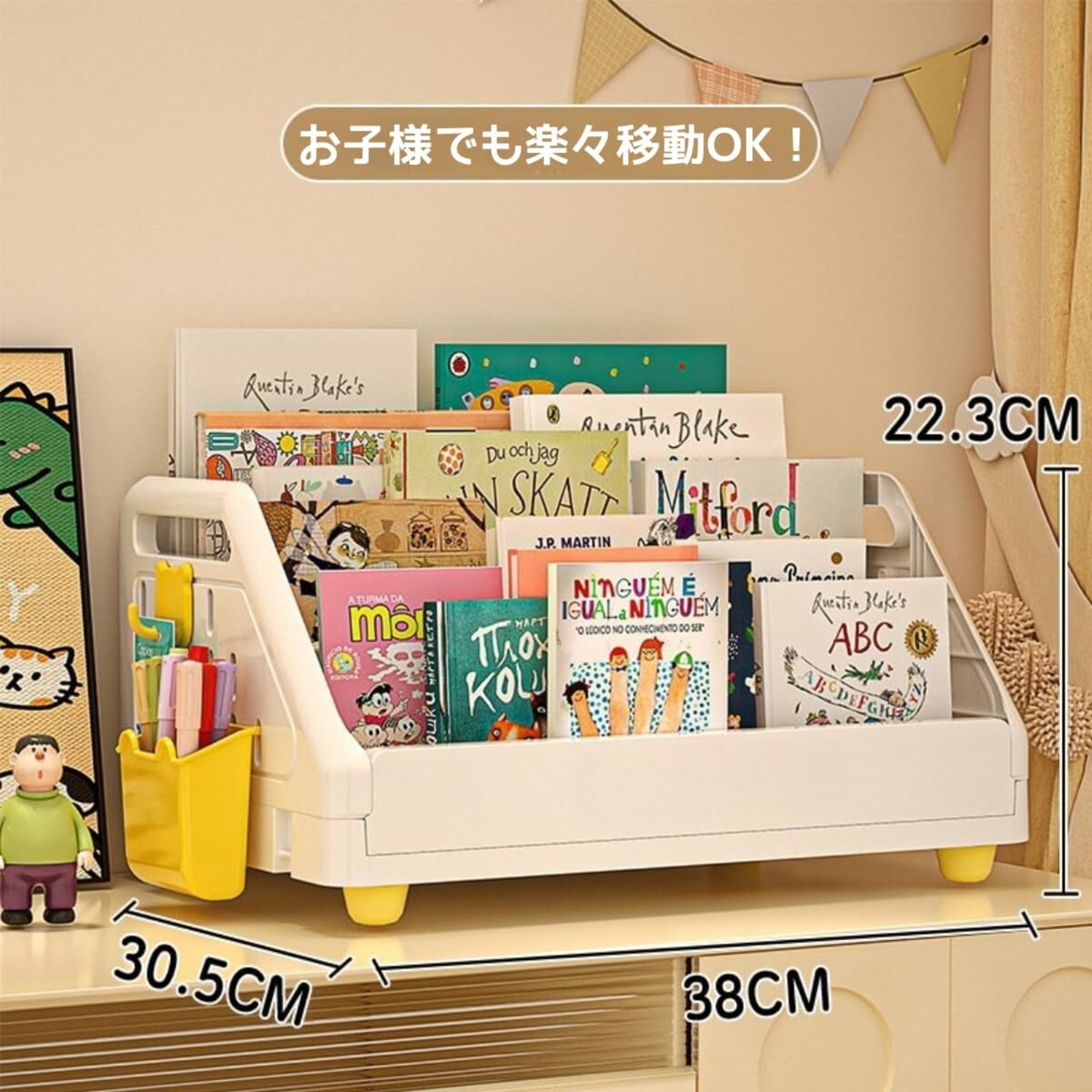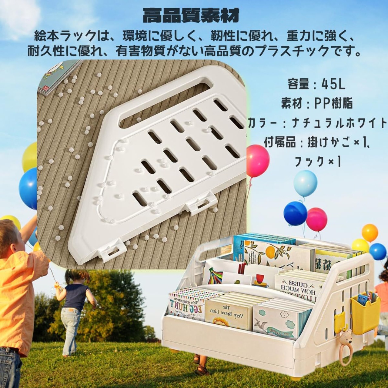 【軽量&移動簡単】 PP素材で軽くて丈夫!両側の持ち手付きデザインで、お子様でも楽々移動OK!絵本をサッと取り出せるので、自主的な読書習慣を育みます。