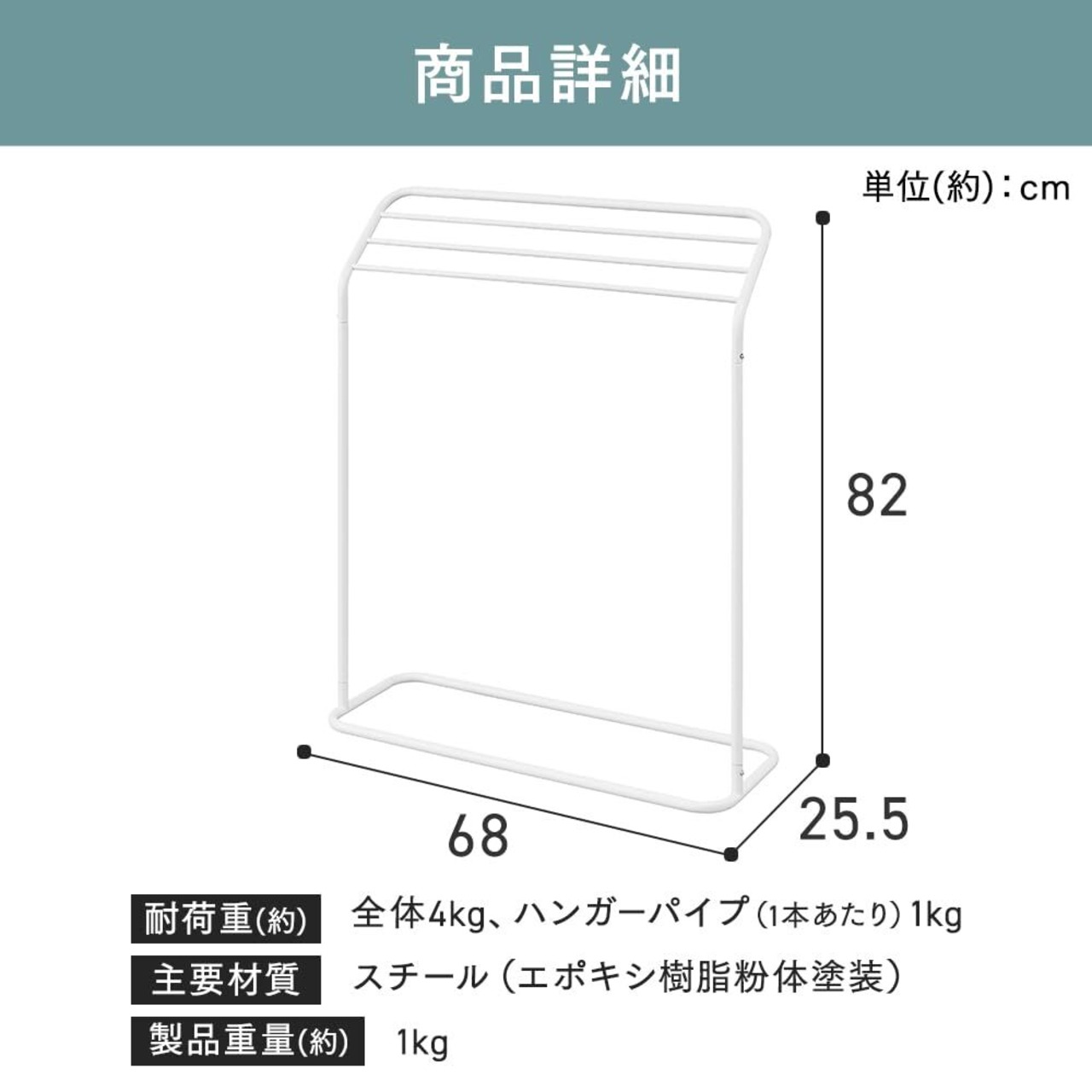 ハンガーパイプ1本あたり:約1kg