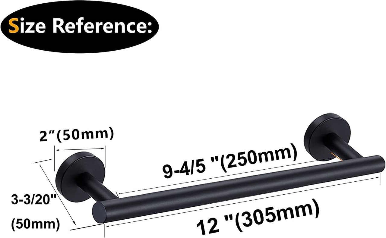 YUET タオルレール 30cm マットブラック ハンドタオルホルダー バー バスルームホルダー バスルーム キッチン ディッシュクロス ハンガー 304ステンレススチール 防錆 壁取り付け 12インチ