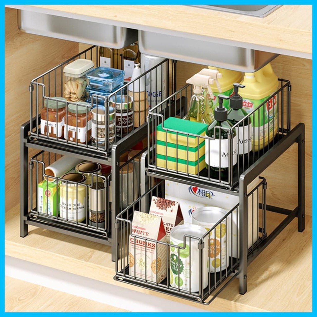 シンク下 収納 引き出し スライド しんくした収納ラック 引き出し 大容量 2段 キッチンシンク下収納ラック キッチンラック キッチン収納ラック 洗面台下 収納 シンク下 組立簡単 幅26×奥行き37×高さ38.5cm 省スペース ブラック [並行輸入品]