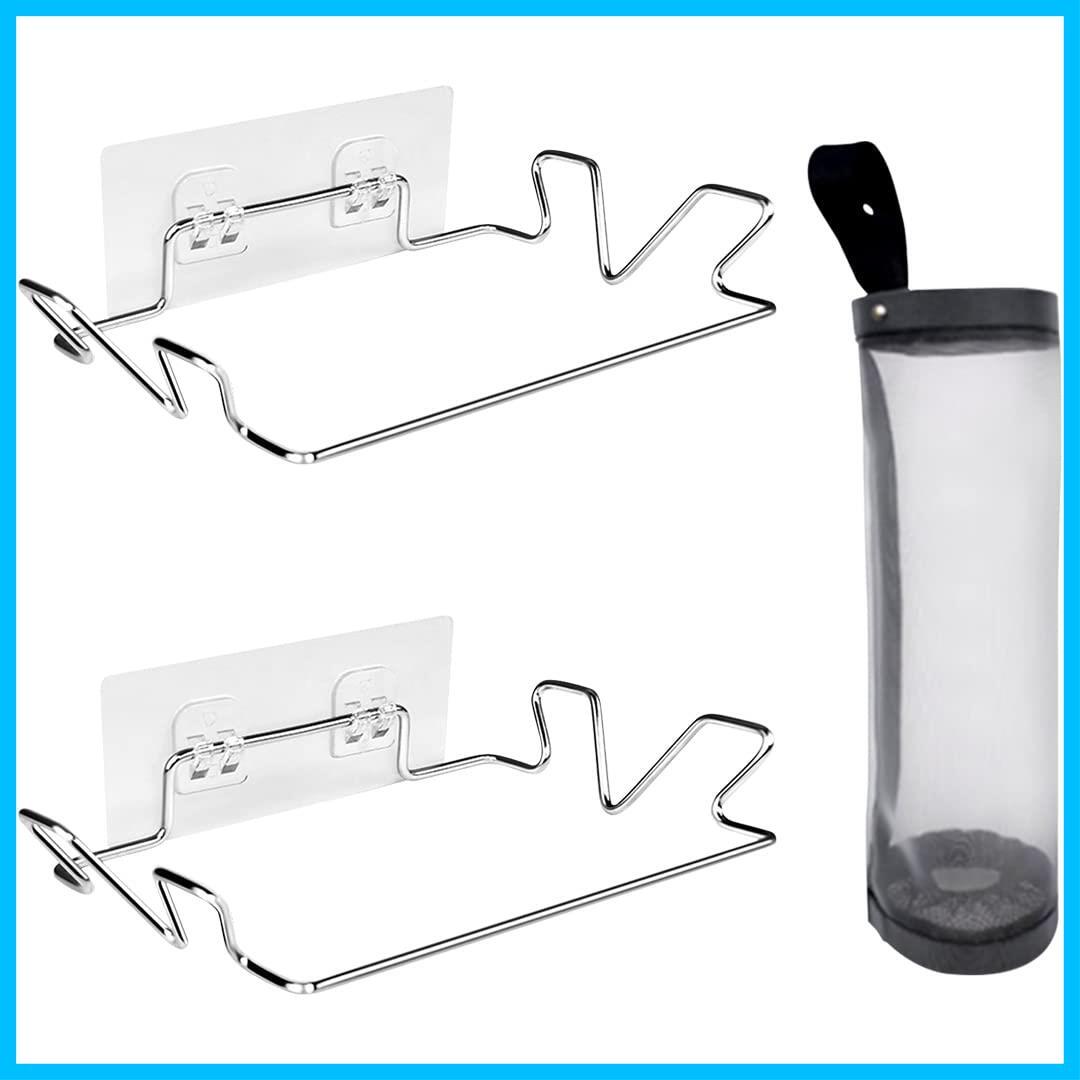 Zayookey レジ袋ハンガー ゴミ袋ホルダー ステンレス鋼 強力粘着 貼り付け 壁掛け 生ごみ入れ スペース節約 ホーム キッチン トイレ 浴室 キャビネット ドア ストレージ 多機能 便利 レジ袋ストッカー付き (レジ袋ホルダー2個+レジ袋ストッカー1個)