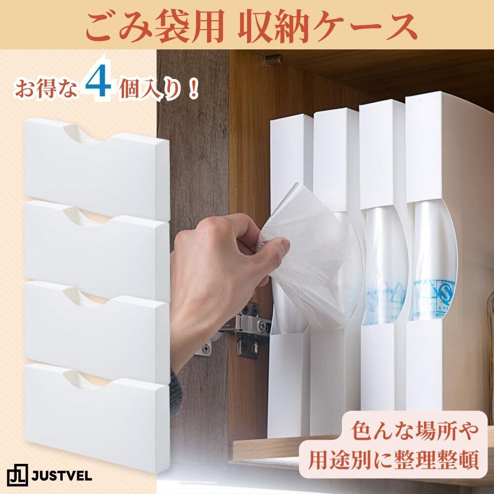 JUSTVEL ごみ袋 収納ケース 4個セット ストッカー スリム ホルダー レジ袋 引き出し スマート キッチン収納 ポリ袋 ゴミ袋 (M)