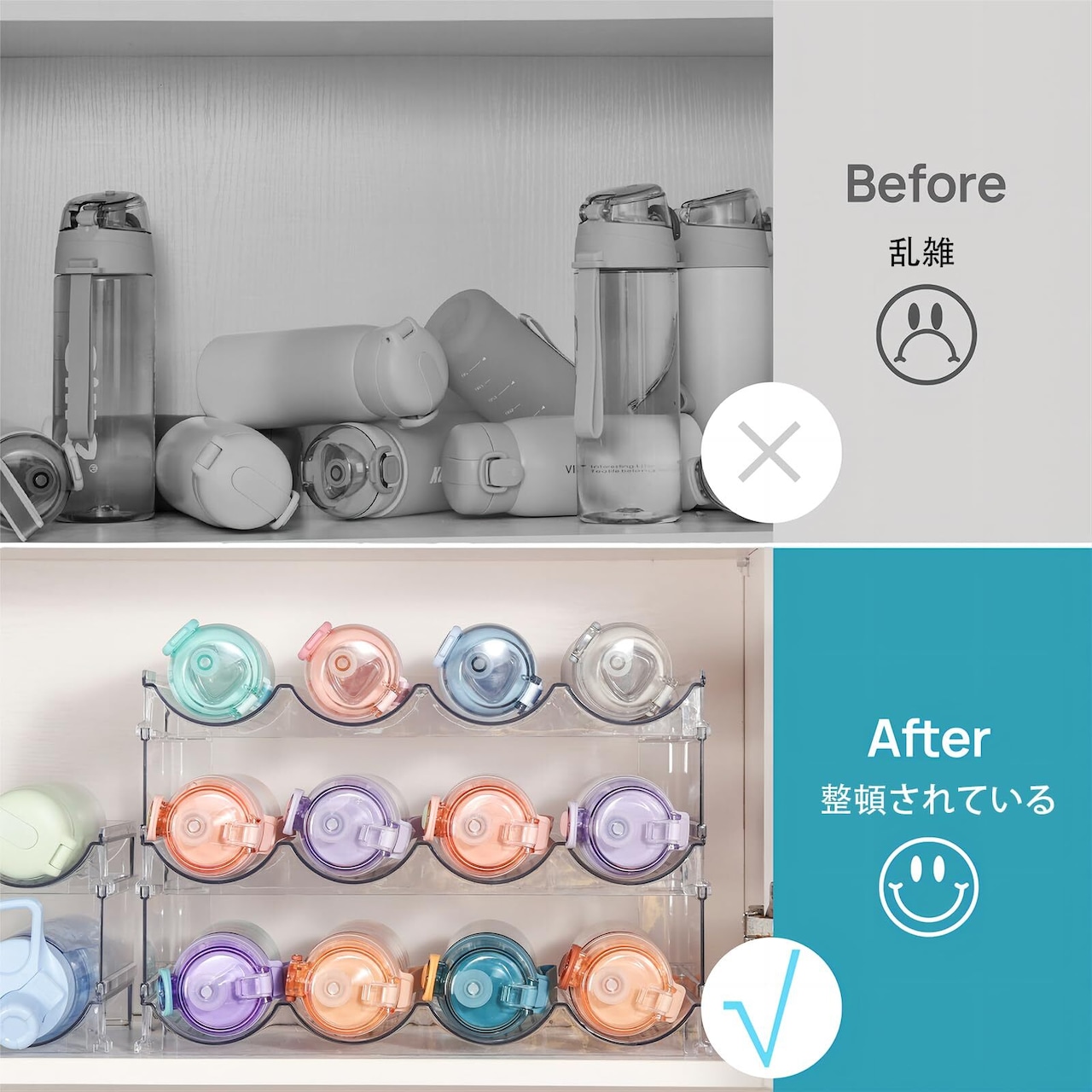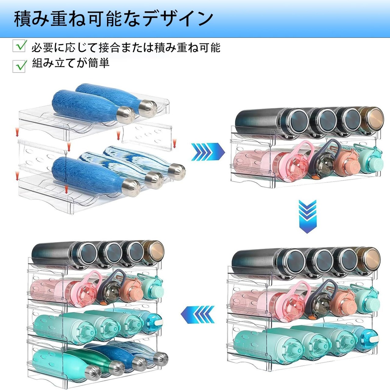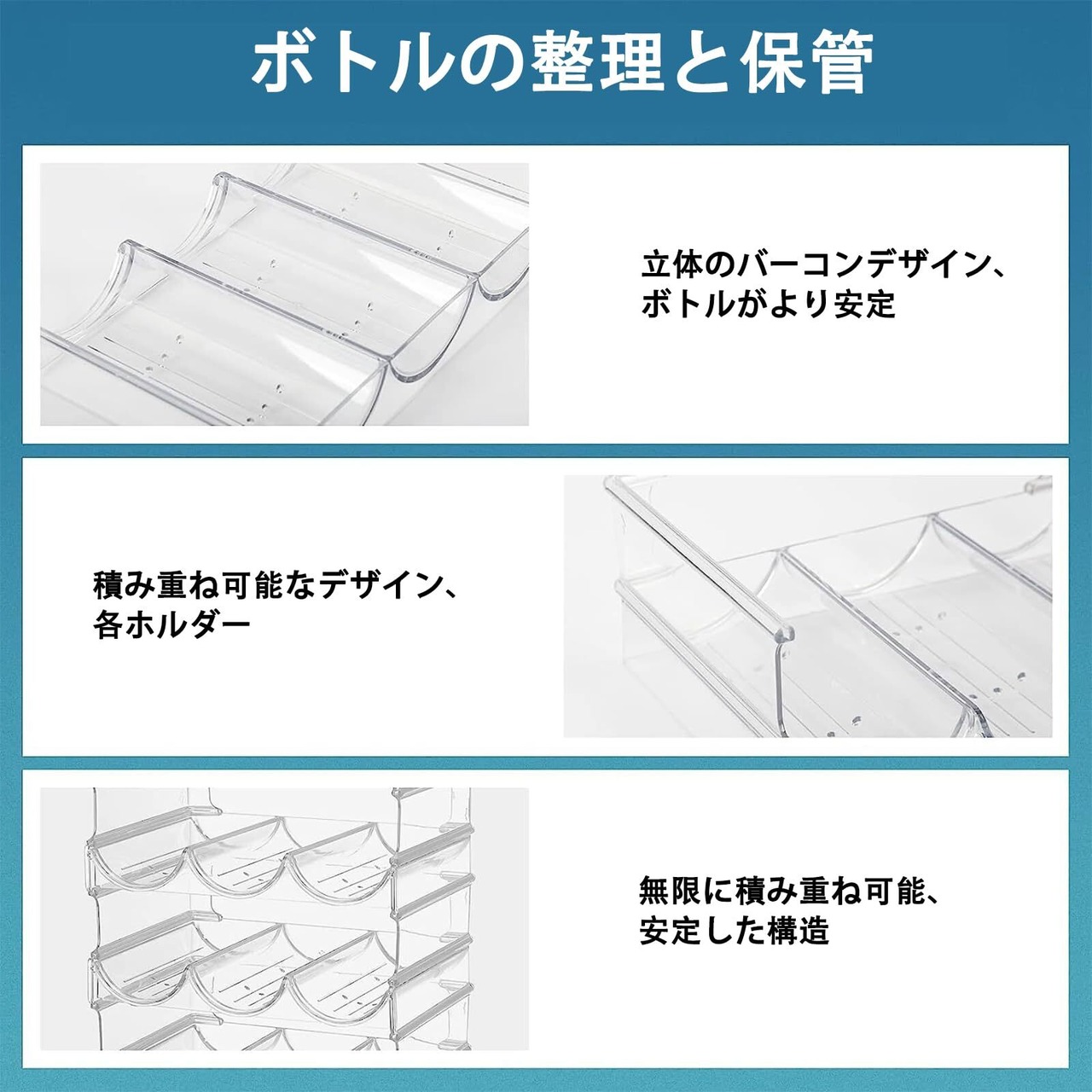 【透明素材で一目瞭然】透明なウォーターボトル収納ラックは、中身がすぐに見えるため、必要なアイテムを素早く見つけることができます。