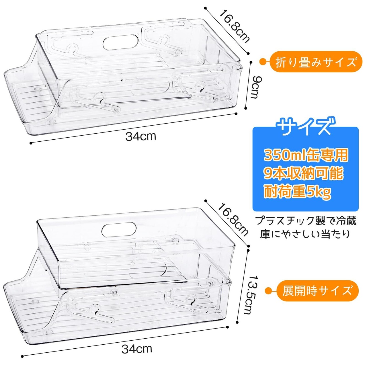 【350ml缶専用&商品仕様】■サイズ:34.8cmx16.8cmx13.5cm 9缶対応 ■材質:PETプラスチック ■カラー:透明 2023年夏発売、350ml缶ストッカーが日本に上陸。 冷蔵庫だけでなく、テーブルの上で使用もでき、夏や冬にも大活躍缶ストッカー ※本製品はサイズが大きいので、ご自宅の冷蔵庫のサイズを測ってからご購入ください。