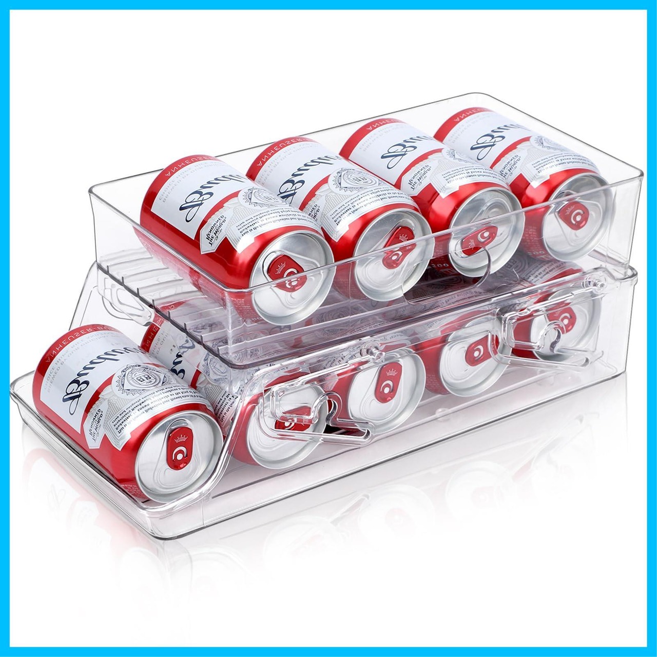 【ゴロゴロ転がり&取りやすい】自動販売機のようにコロッと転がってくるのも楽しく、便利です。先入れ先出し、賞味期限が古いモノや先に冷やしたモノから取り出し可能です。そして、便利な取っ手付き、冷蔵庫の高所からの取り出しや持ち運びが便利です。