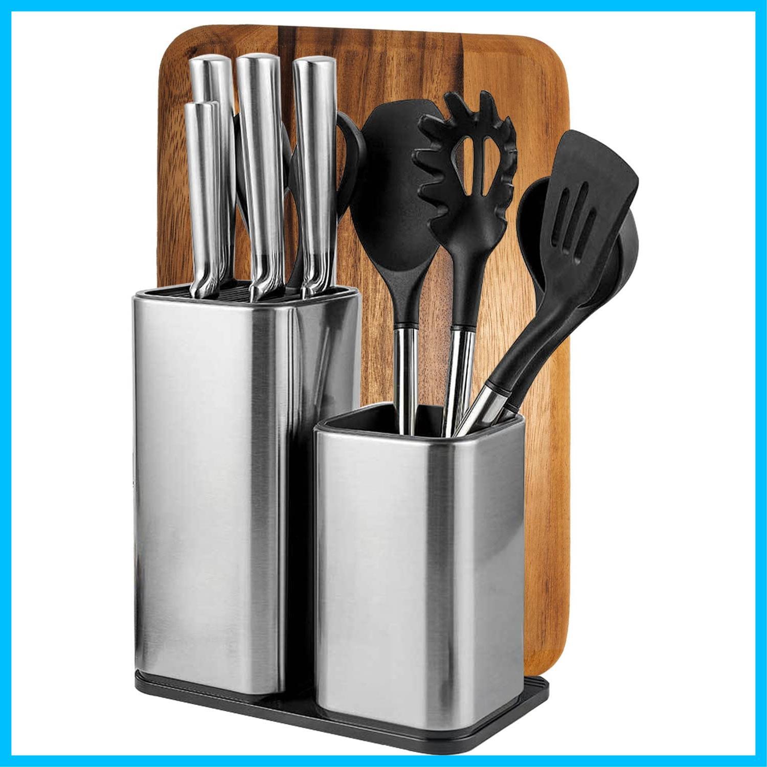 【収納力抜群のキッチンツールスタンド】まな板のスタンド、包丁のスタンド、調理ツールスタンドの機能を兼ね備えたキッチンツールスタンド。包丁12本、まな板、キッチンばさみ、フライ返し、おたまなどの調理ツールをまとめて収納できます。抜群の収納力でキッチンをスッキリと整理整頓。使いたいときにサッと取り出せるので、調理の効率もアップします。