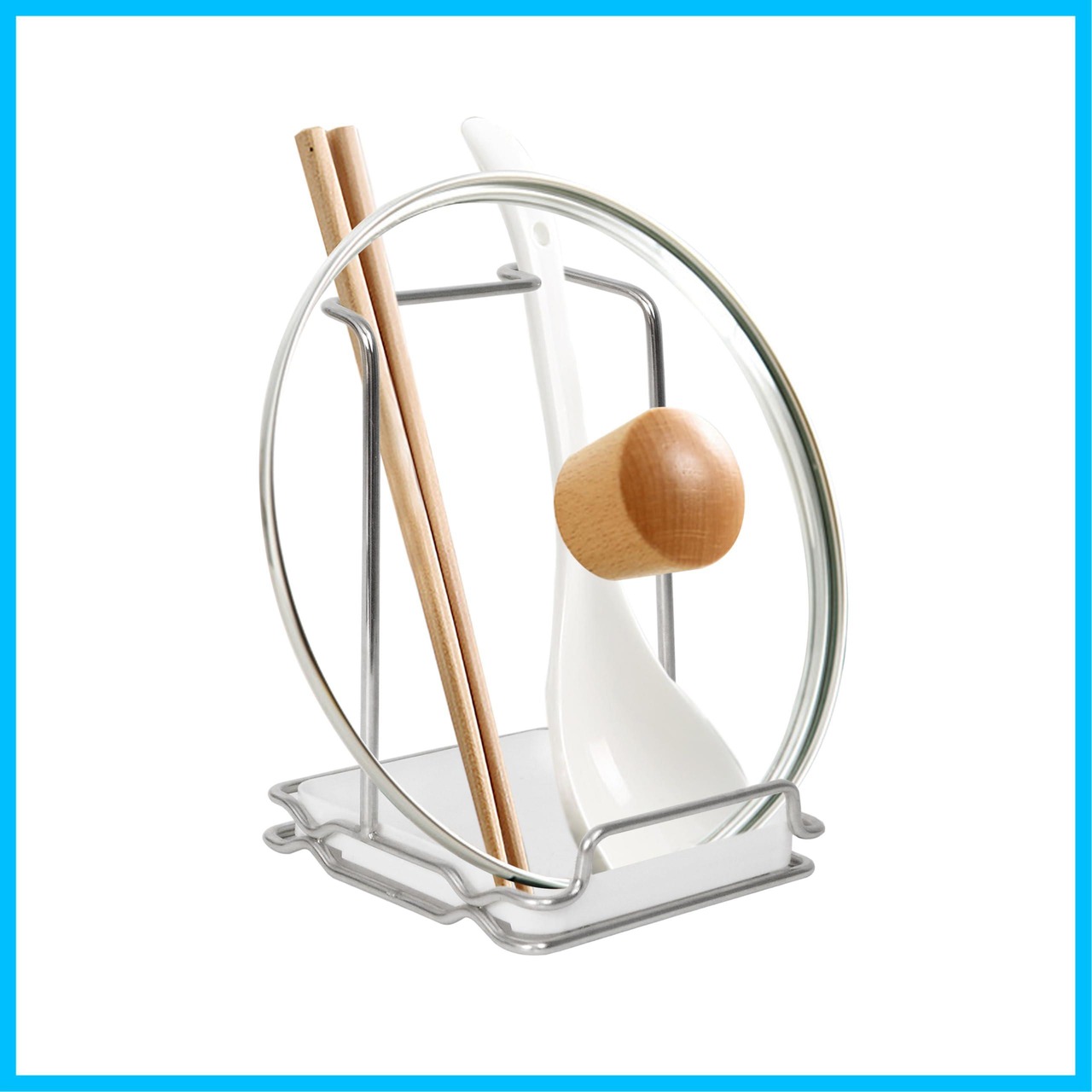 【抜群の安定感】玉 & 鍋ふたスタンドは高品質のステンレス製で、錆びにくく、雑菌が繁殖しにくいです。トレーの前面は高く、上部はカーブしているので、キッチンツールの収納がより安定します。