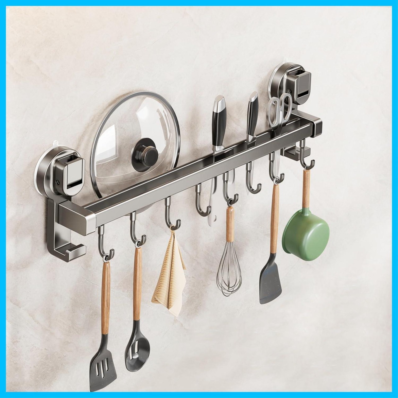 キッチンツールフック 【革新の強力吸盤 ダブルバー 可動式フック】 cラック 吸盤式 強力吸着 アルミニウムとABS製 耐荷重最大30kg 台所ラック 台所収納 強い収納力 軽量 穴あけ不要 キッチンツール 壁掛け 防水 防錆 防油 バスルーム/リビング/ベランダなどに適用 (黒 40CM)