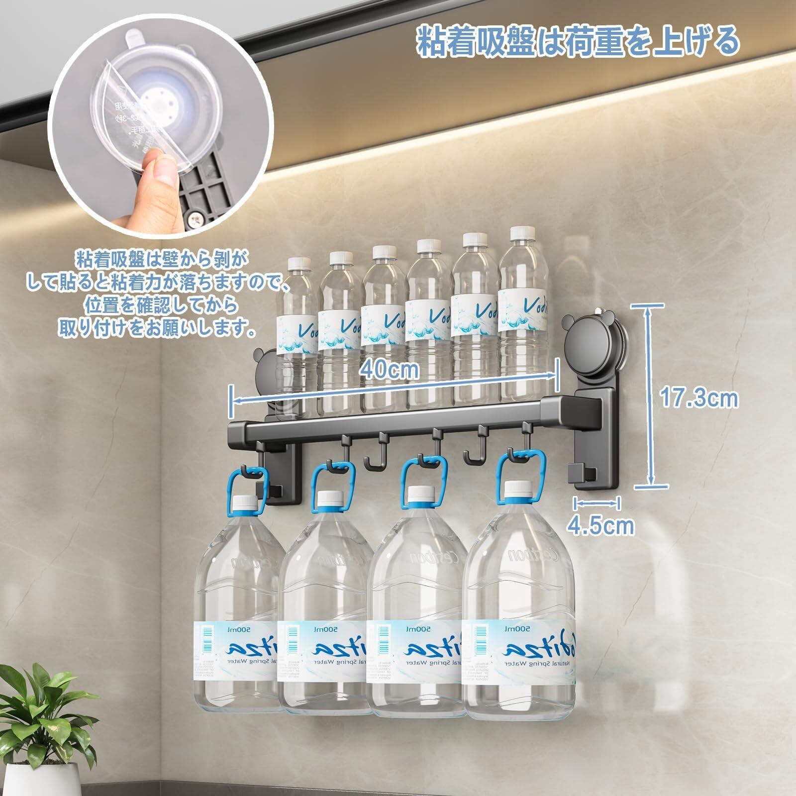 【新着商品】キッチンツールフック 壁掛け 粘着 吸盤 強力 壁美人 台所 収納 調理器具 収納 壁に穴を開けないフック 金属 アルミニウム 防水防錆 40cm 6個フック グレイ CICUFY