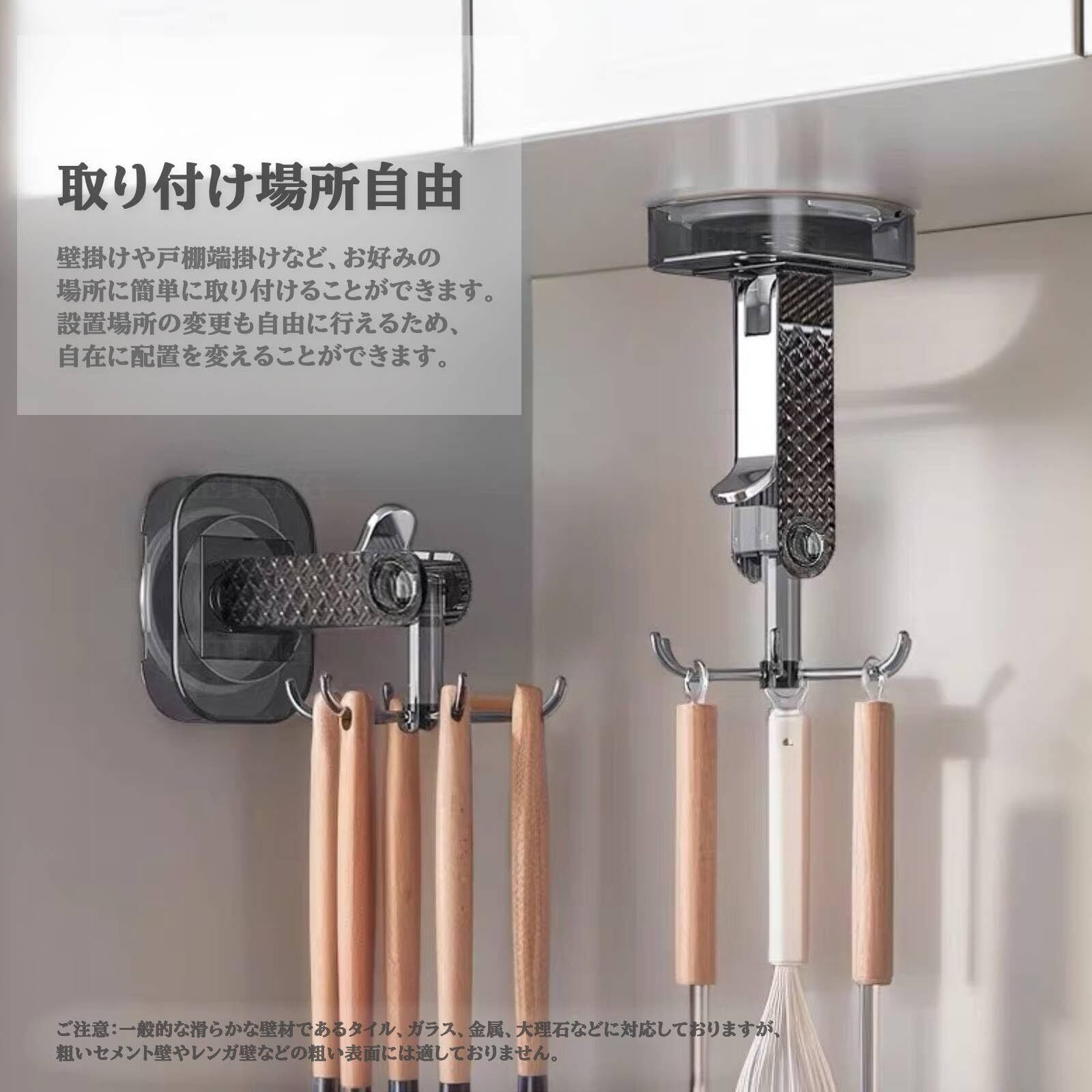 キッチンツールフック 吸盤 フック キッチンラック 台所ラック 360°回転可能 強力接着 キッチン収納 軽量 キッチンツール 収納 バスルーム収納 防水防錆 壁掛け 取り付け簡単 傷つけない 6個フック付き