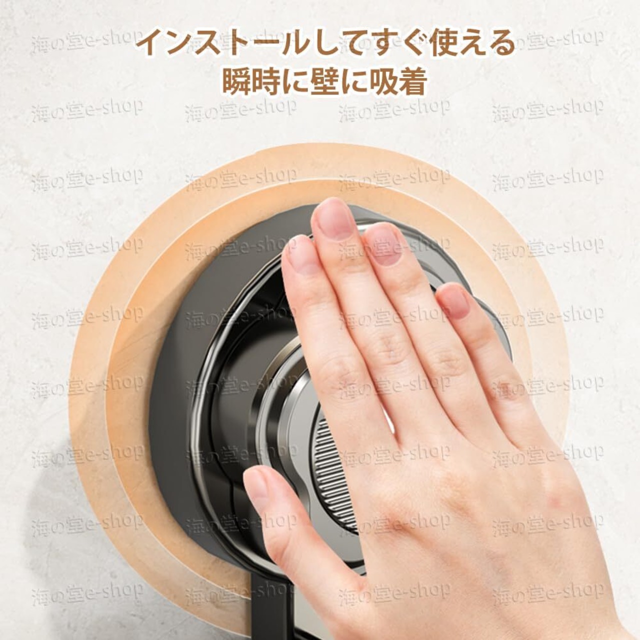 【革新的な強力な吸盤】当社のキッチンツールフックは、全面アップグレードされた第4世代の真空吸盤を採用しています。高品質素材を使用し、外装はABS、吸盤と壁面の接続部分は最新のTPE素材で作られています。ワンプッシュで簡単に真空状態を作り、ロックできる設計です。壁にしっかりと密着し、時間が経つほど吸着力が強くなります。取り外し時に壁に傷がつかない点も安心です。