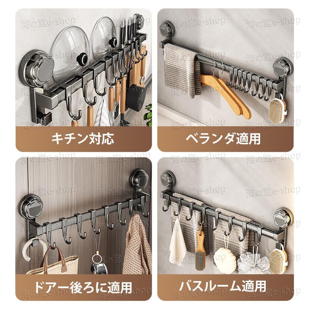 【在庫処分】キッチンツールフック ラック 吸盤式 超強力吸盤 アルミニウムとABS製 軽量 穴あけ不要 壁掛け 調理器具収納 包丁収納 鍋蓋置き 防水防錆 穴あけ不要 お風呂 シャワーラック タオルハンガー 多機能収納 可動式バスルーム キッチン リビング ベランダなどに適用 (クリーム-6個フック, 30cm)