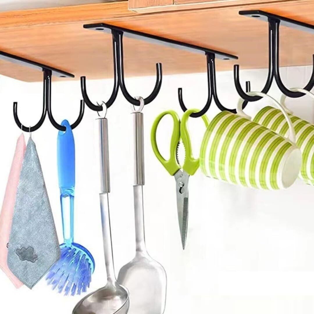 【在庫処分】siawadeky カップハンガー キッチンフック 吊り下げ 4個セット 戸棚下収納ラック マグカップホルダー 水切りフック 安定性 ネジ付き 小物収納 キッチン 家庭